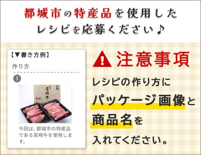 ぜひ都城市の特産品を使ったレシピを応募してくださいね!