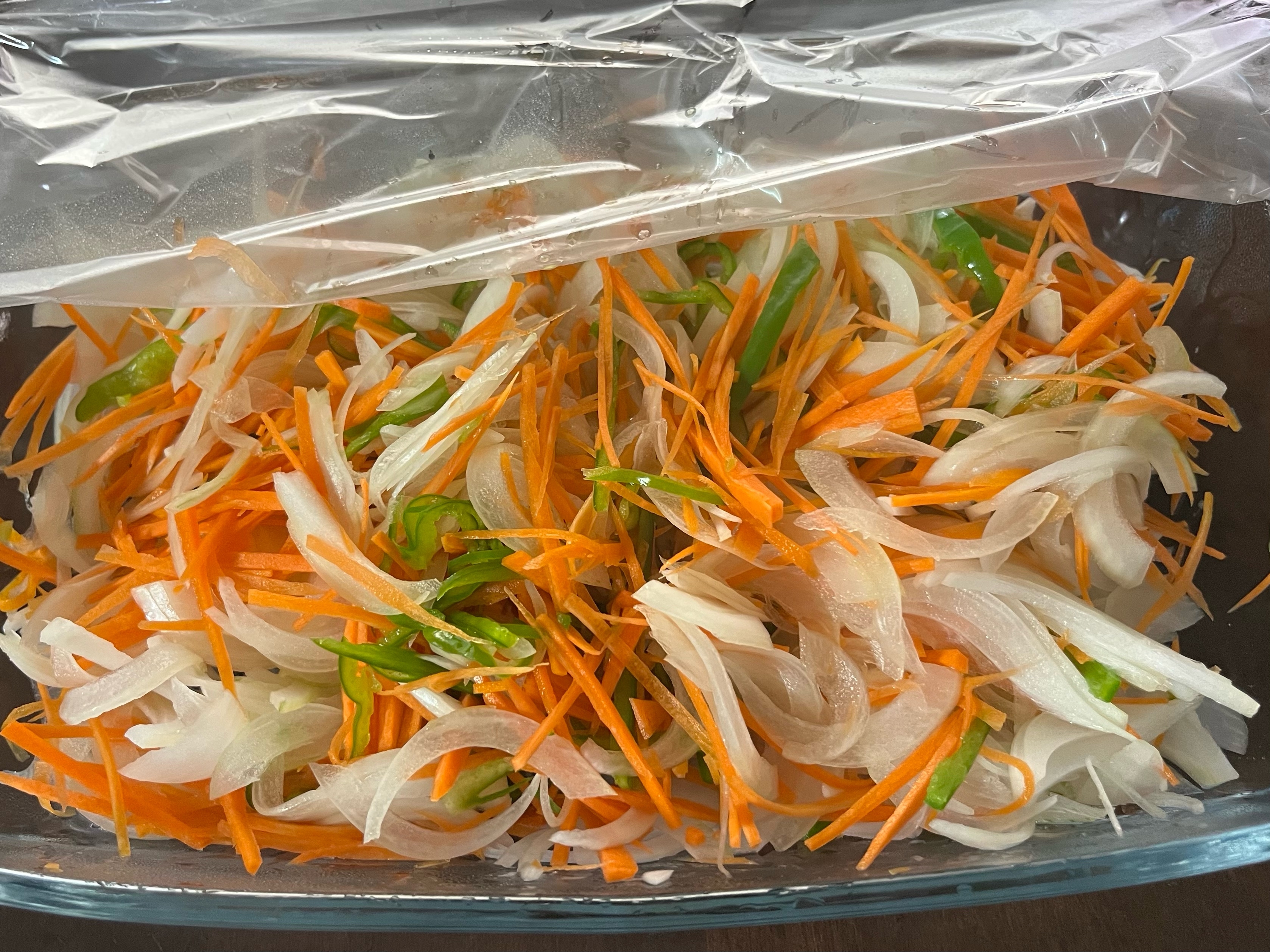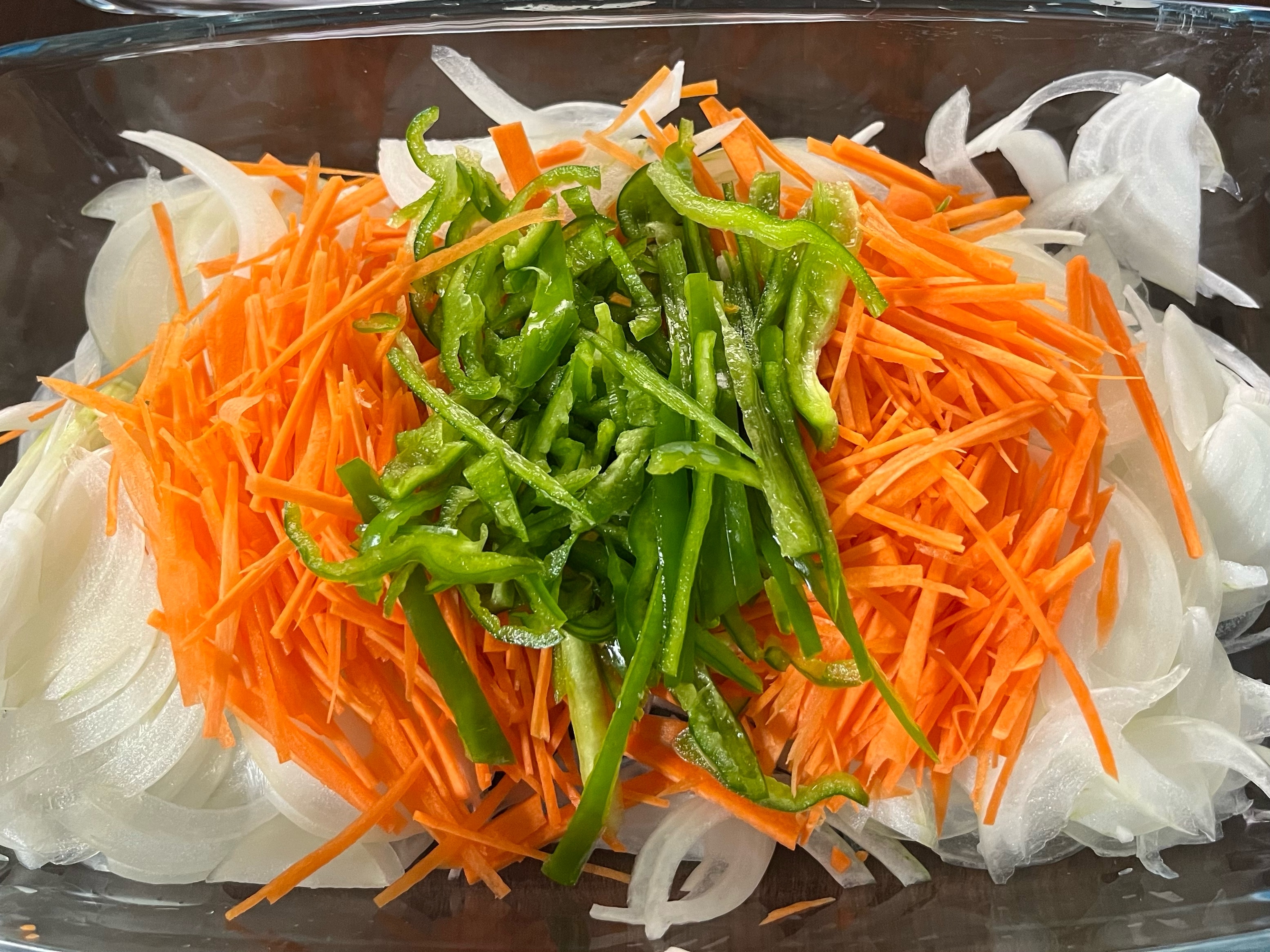 玉ねぎ、人参、ピーマンは千切りにする。
