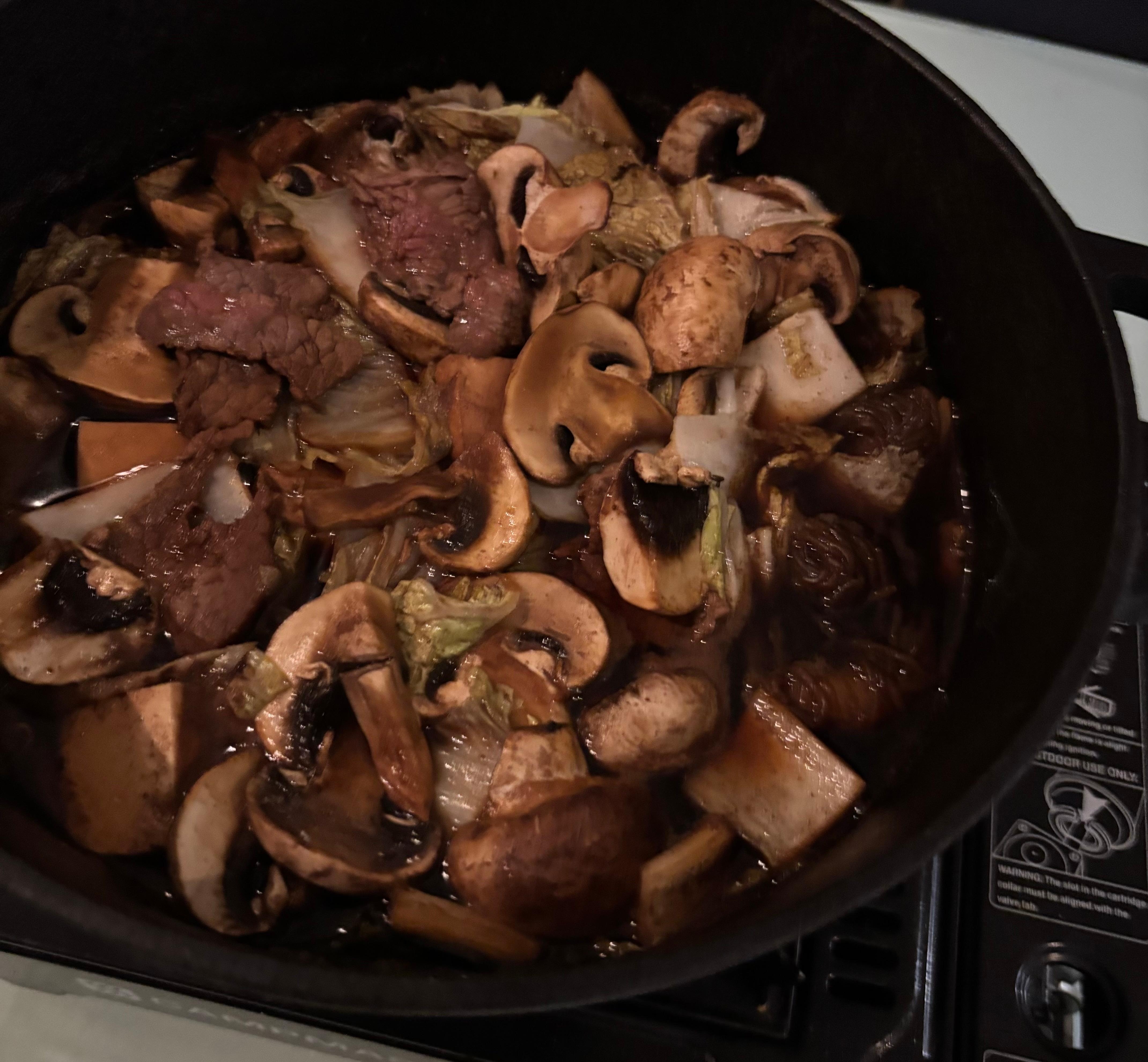 - 9 牛ステーキ肉を使ってシンプルなすき焼きを作りました♪