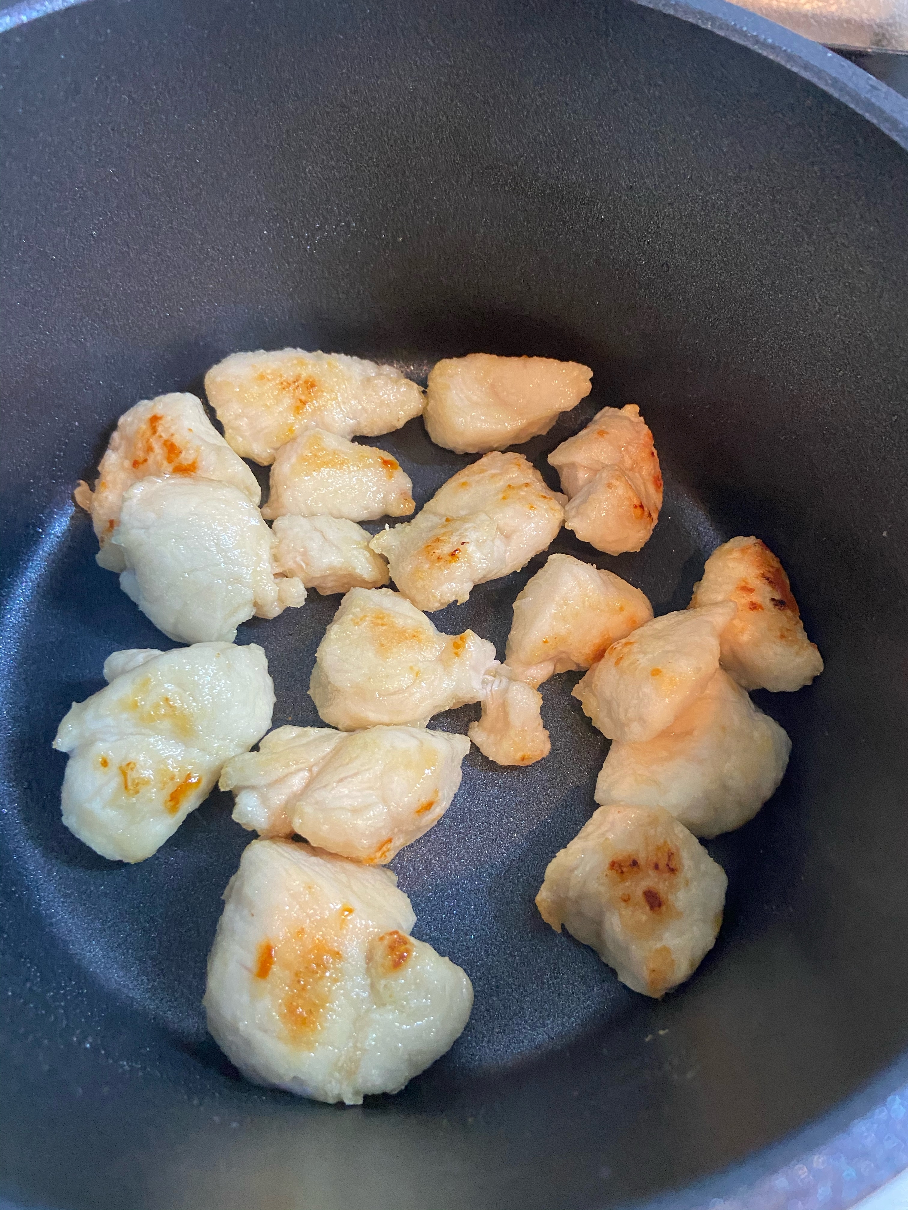 片栗粉をまんべんなくすり込ませて弱火でゆっくり炒める