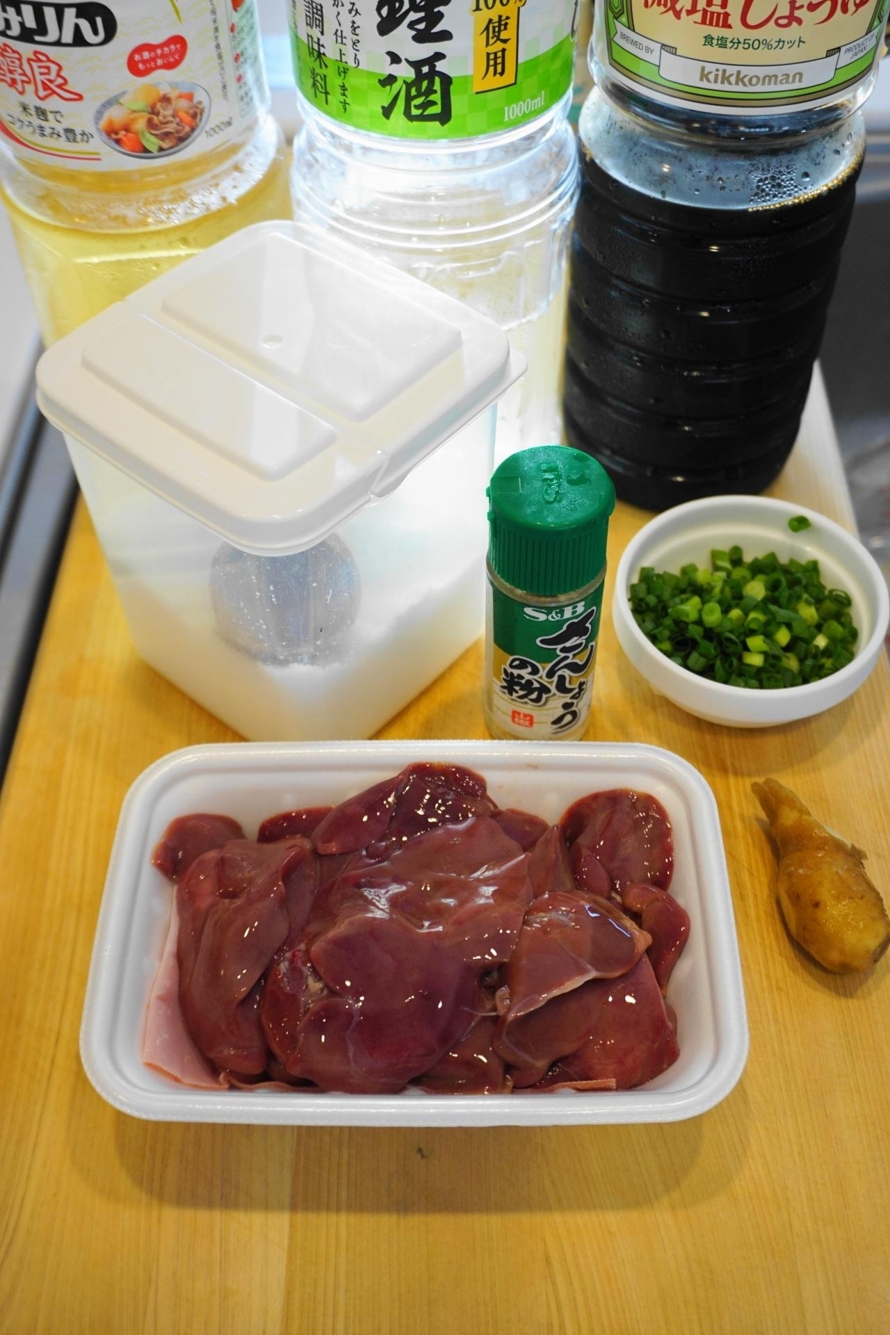 鶏レバーは一口大に切り~冷水に浸しながら血の塊を丁寧に取り除き(途中で水を替え~10分くらい)ザルに上げ水気を切り~ボウルに入れ酒をまぶし置く(10分くらい)。