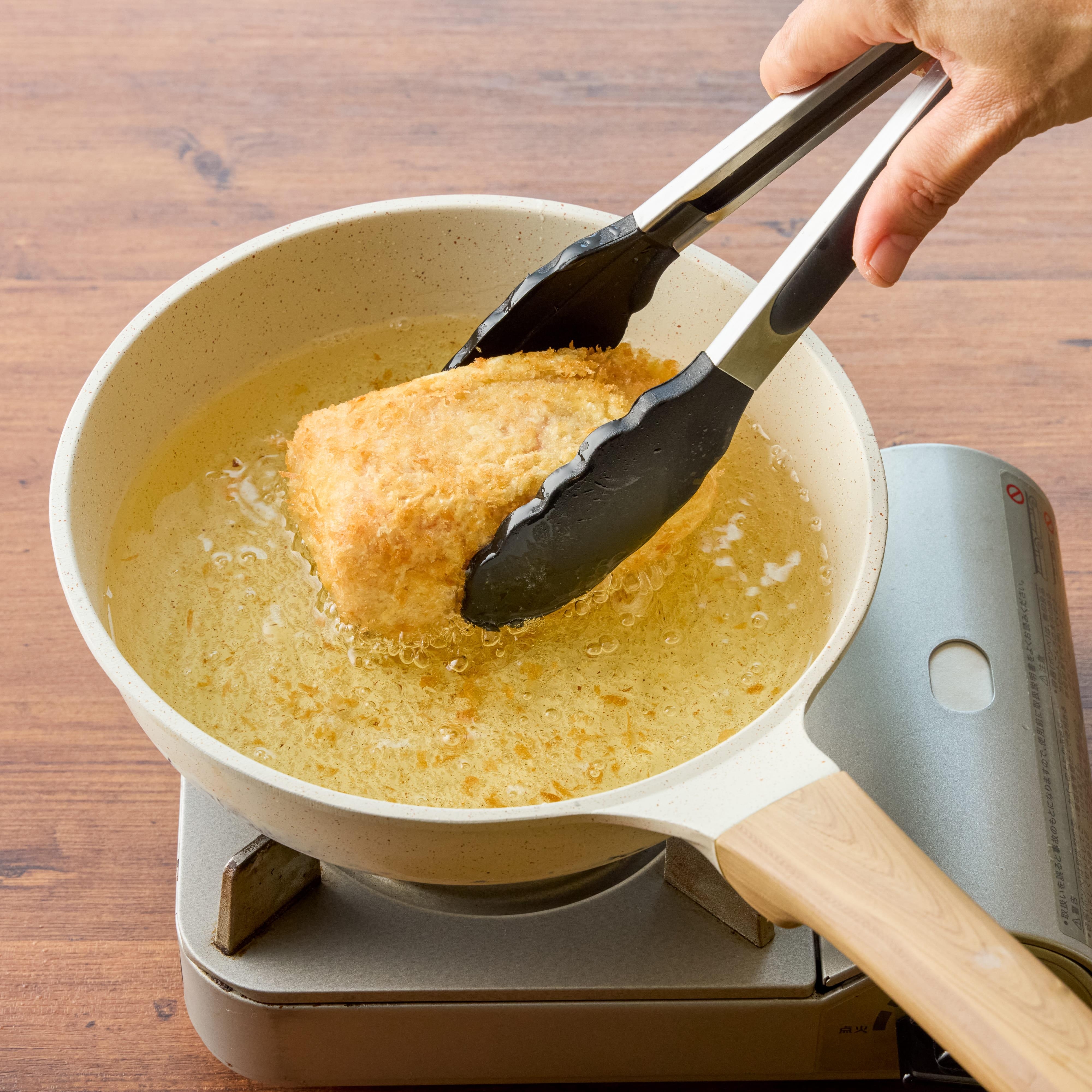 180℃に熱した揚げ油に6を入れて表面がきつね色になるまで揚げる。