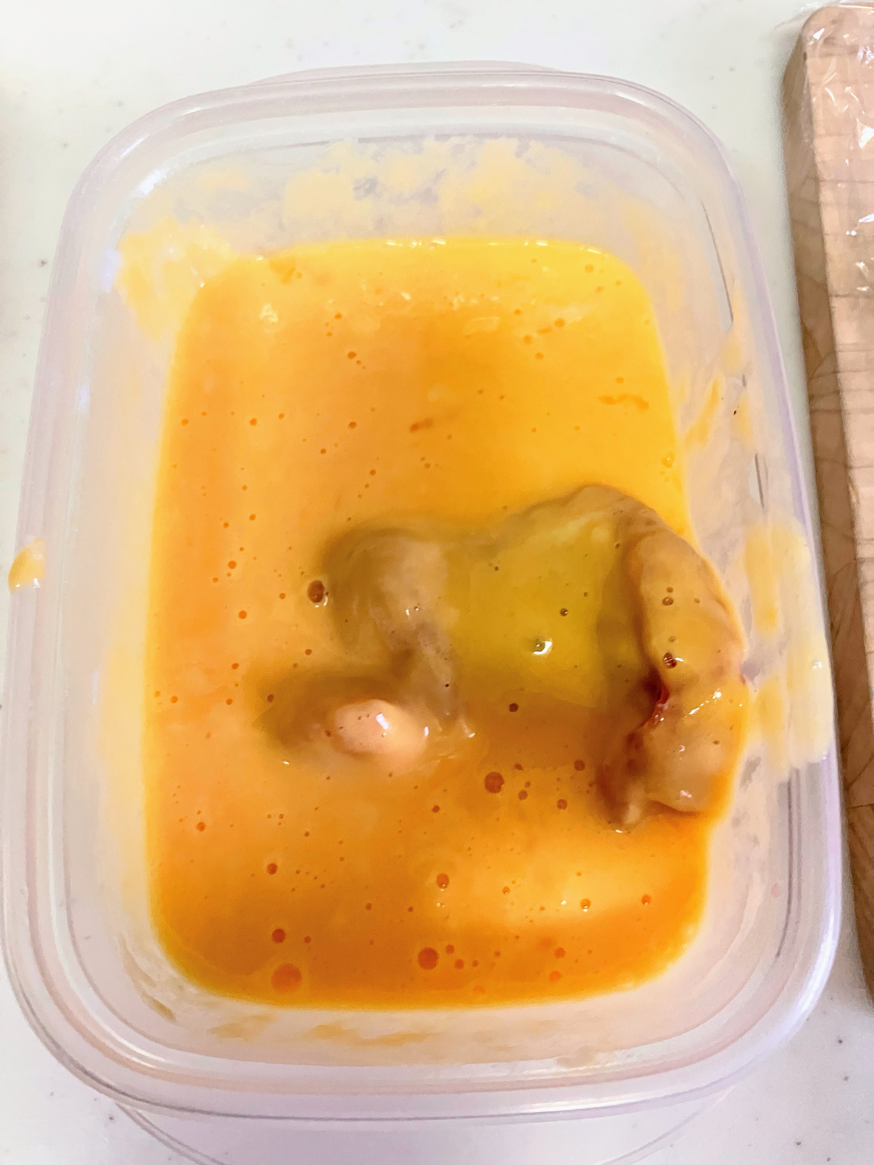 卵2個を割り入れよく溶きほぐす。