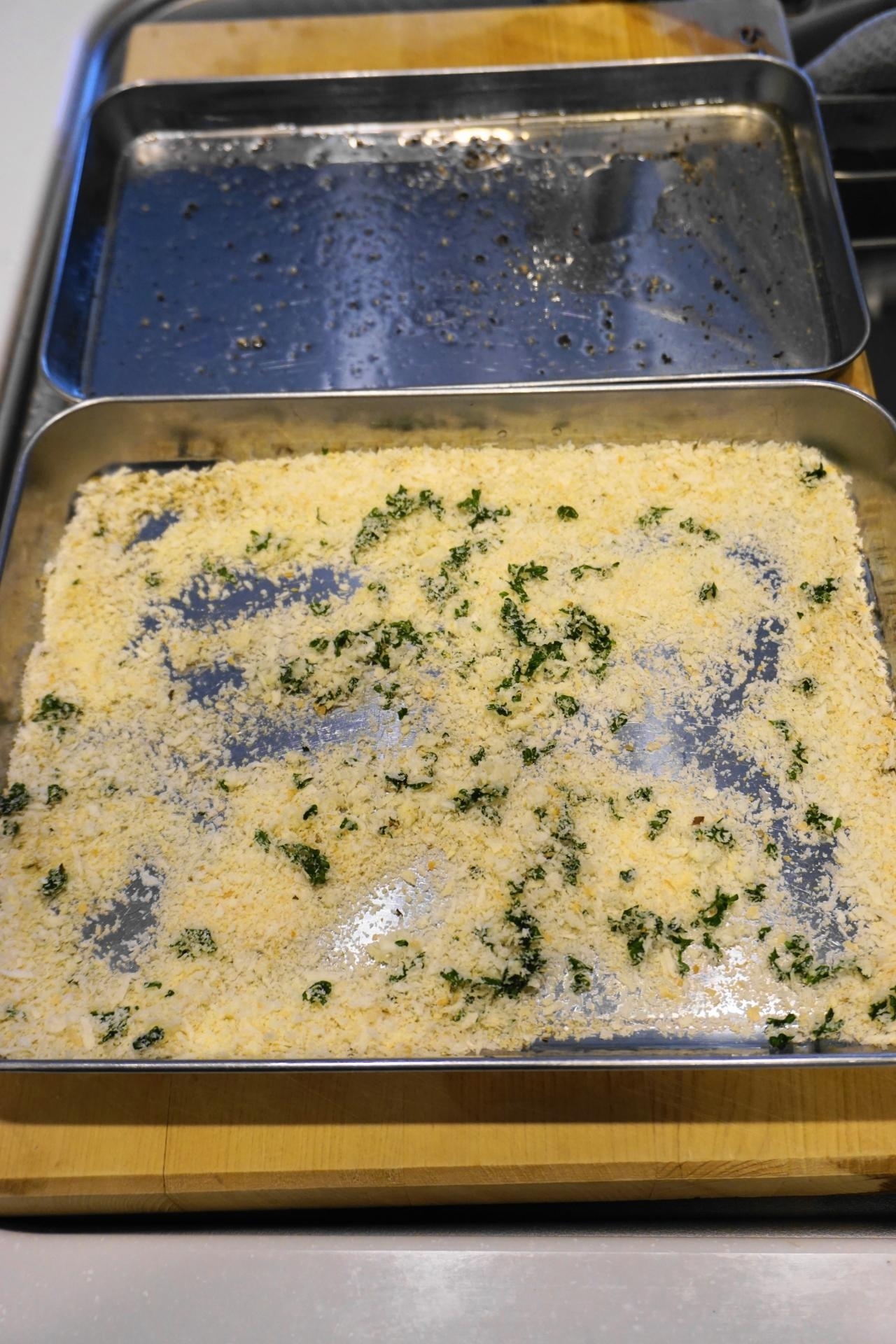 別のバットに☆・2)のニンニク・パセリを入れ~混ぜ合わせ香草パン粉を作る。
