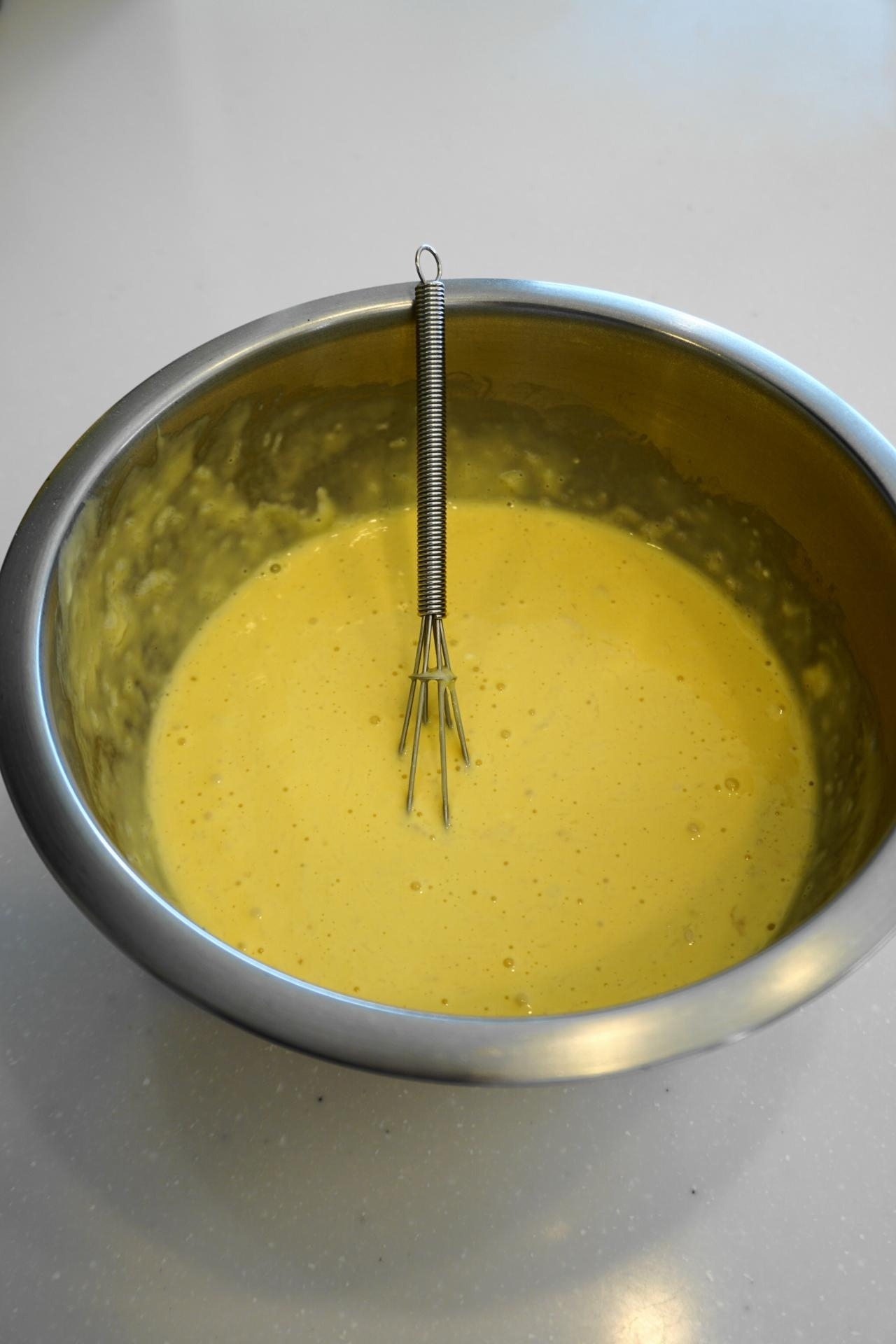 ボウルに★・2)の長いもを入れ~泡立て器で粉っぽさが無くなるまで混ぜ合わせ~卵を割り入れて混ぜ合わせる。