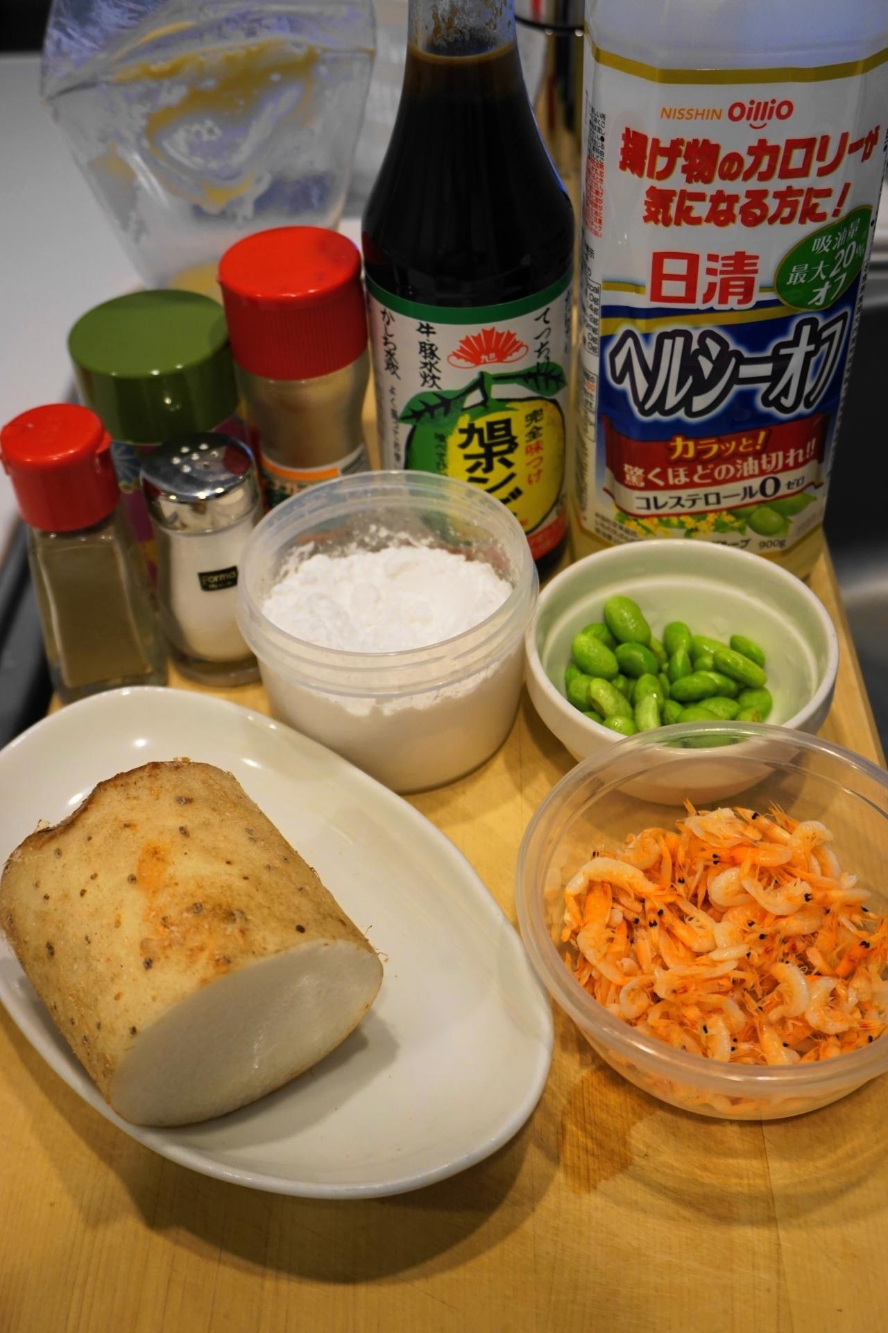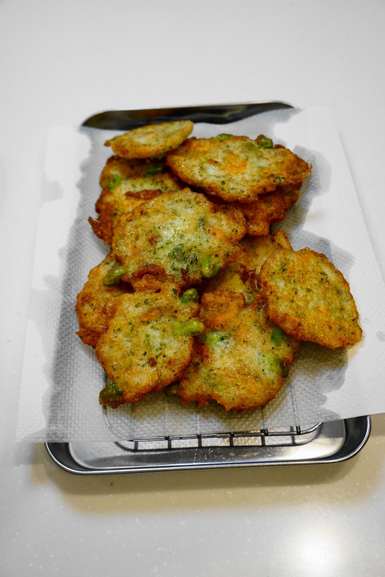 - 長芋と枝豆と桜えびの落し揚げ