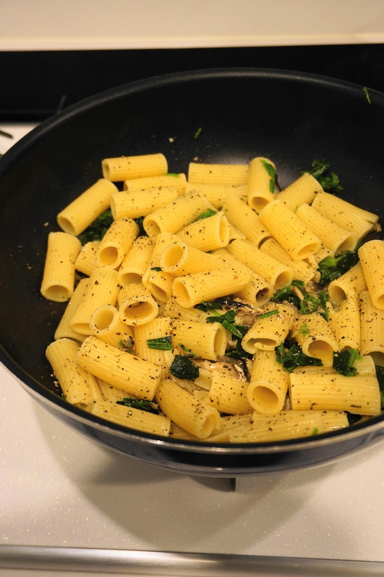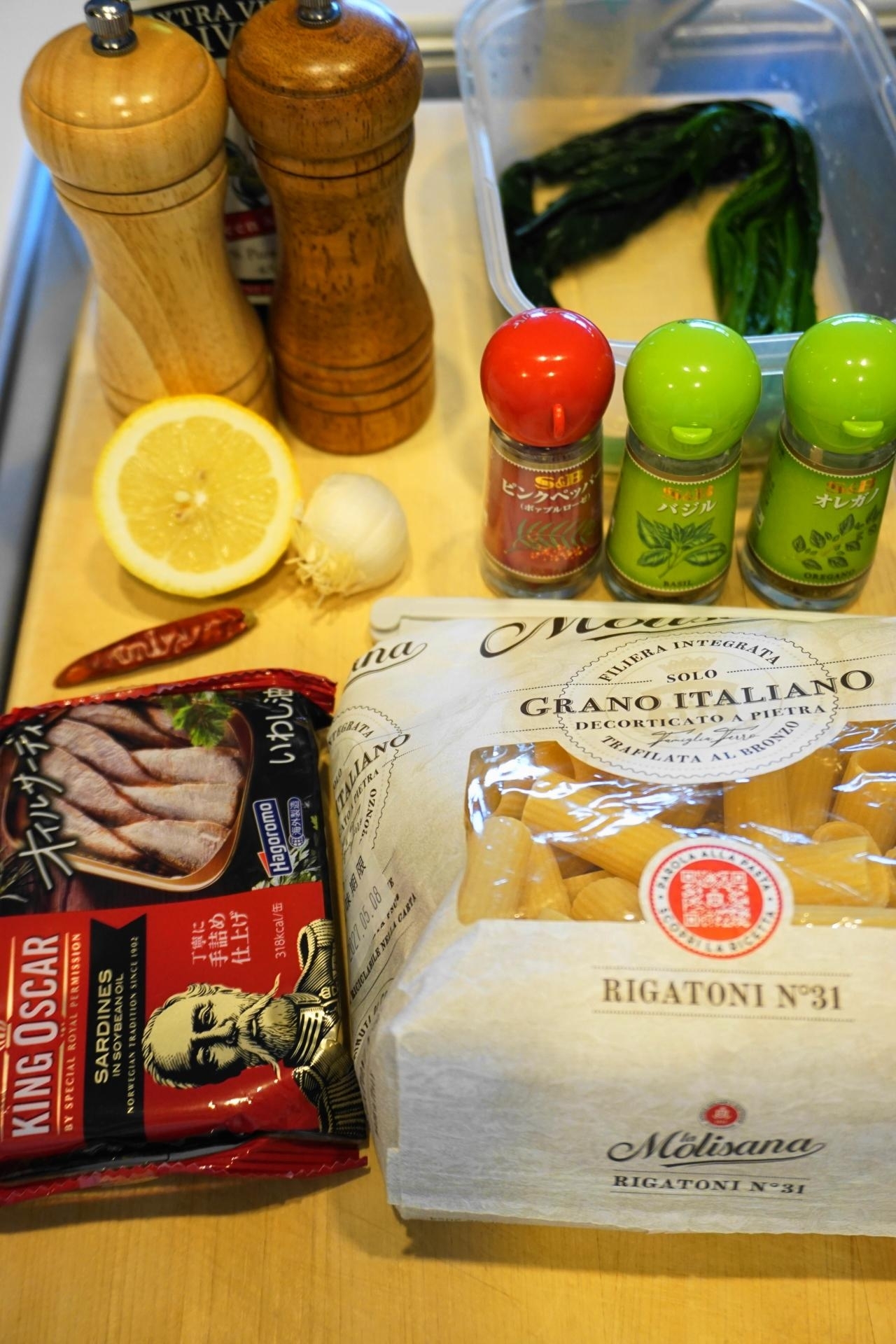 オイルサーディンとほうれん草のリガトーニ レシピ・作り方