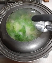 「3」に蓋をして沸騰したら、弱火〜中火で約15分煮込みます。