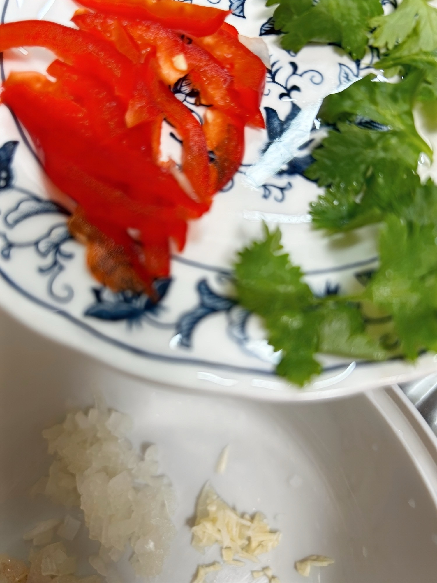 - ◇パクチーの葉(苦手は三つ葉、無しも可) 8枚