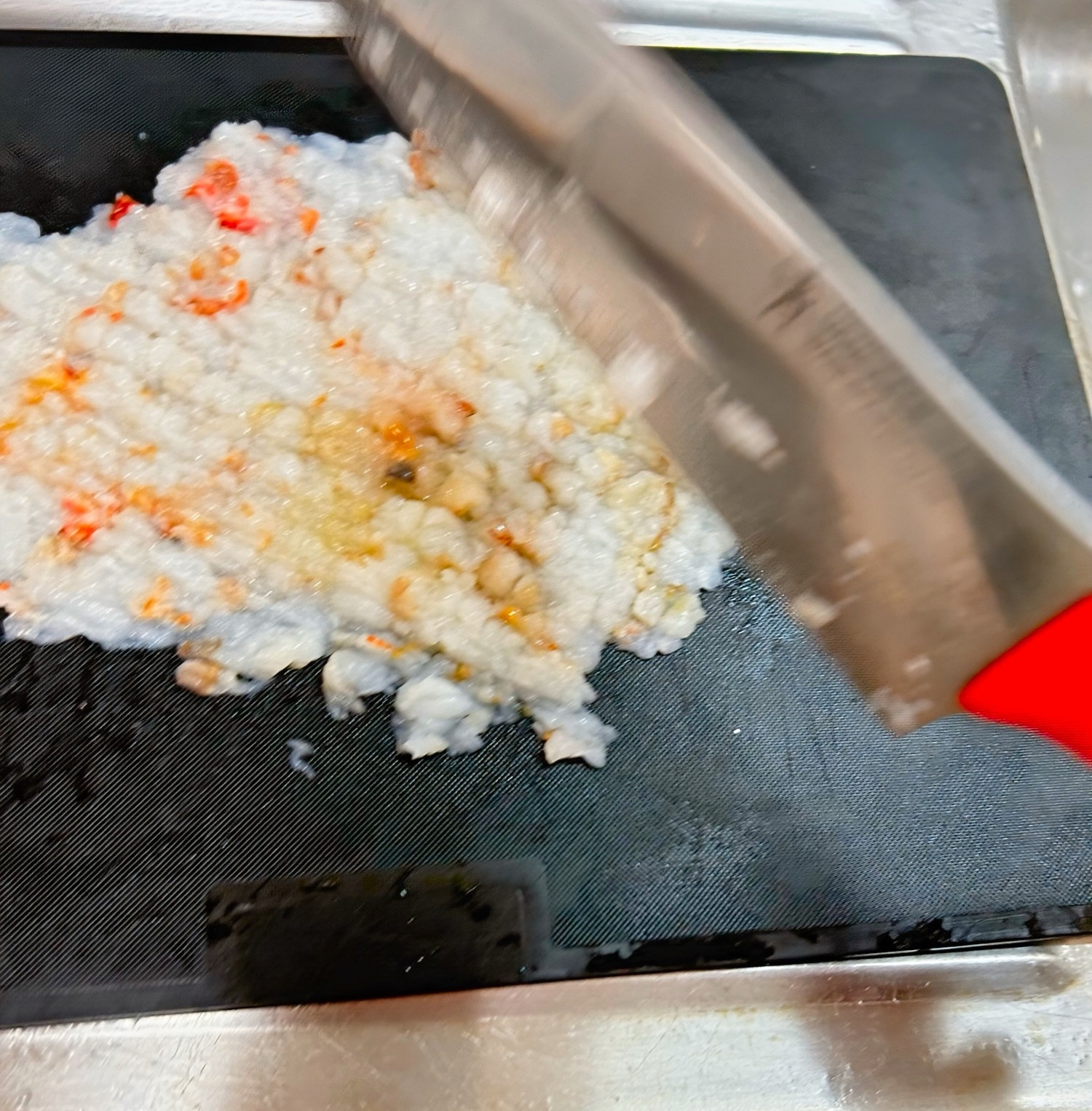 エビを粗微塵に切ってから更に包丁で叩き極力細かくします※完全にすり身にしなくてもOK 少しエビの食感が残っているのも美味しいです。