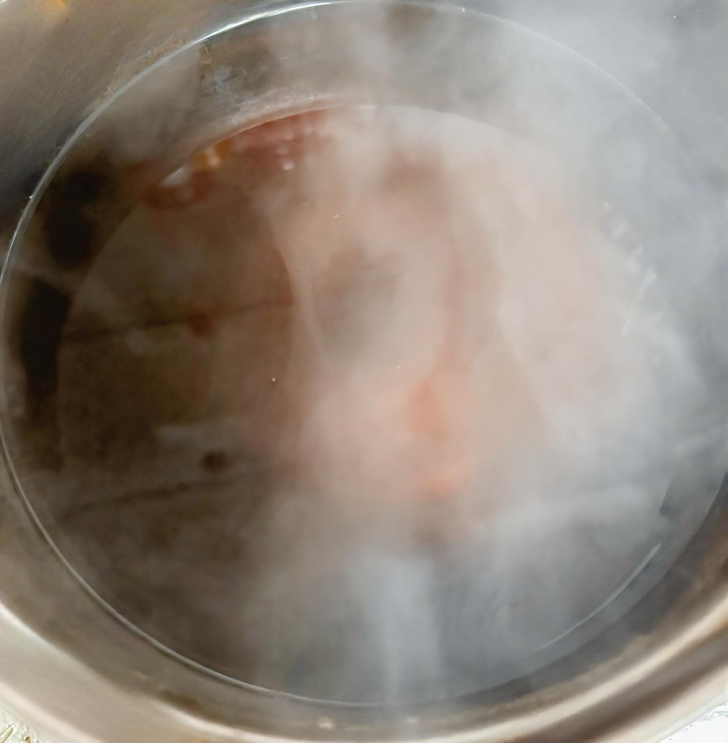 手順1を手順2の鍋に加えて一煮立ちさせ、つゆの出来上がりです。出来れば気をつけながら極弱火で温度を保っておきます。