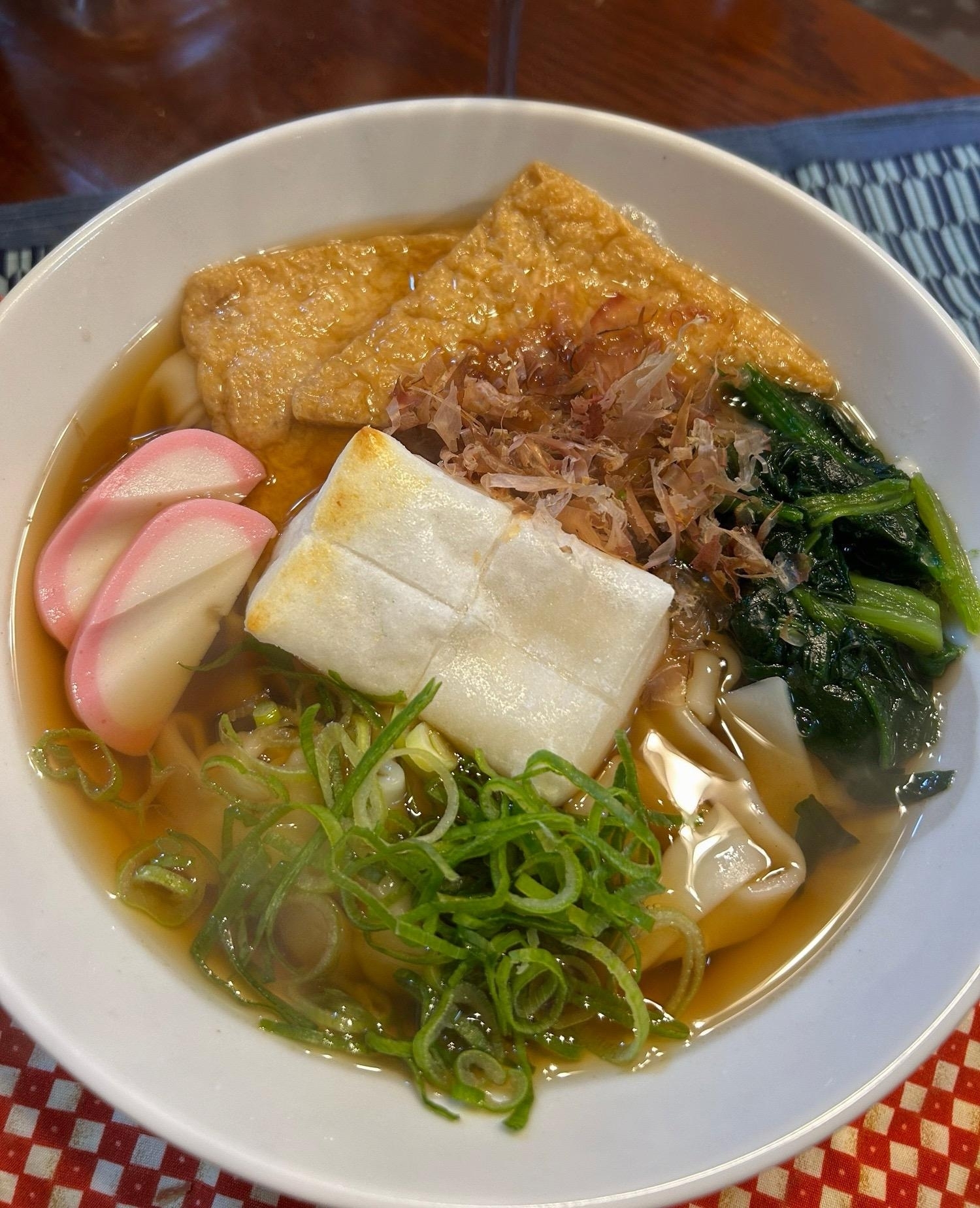 餅が入るのでつゆは多めの出汁濃いめにして美味しいです。わたしはあご出汁がいちばん好きですが、いりこやカツオを組み合わせでも美味しいです。