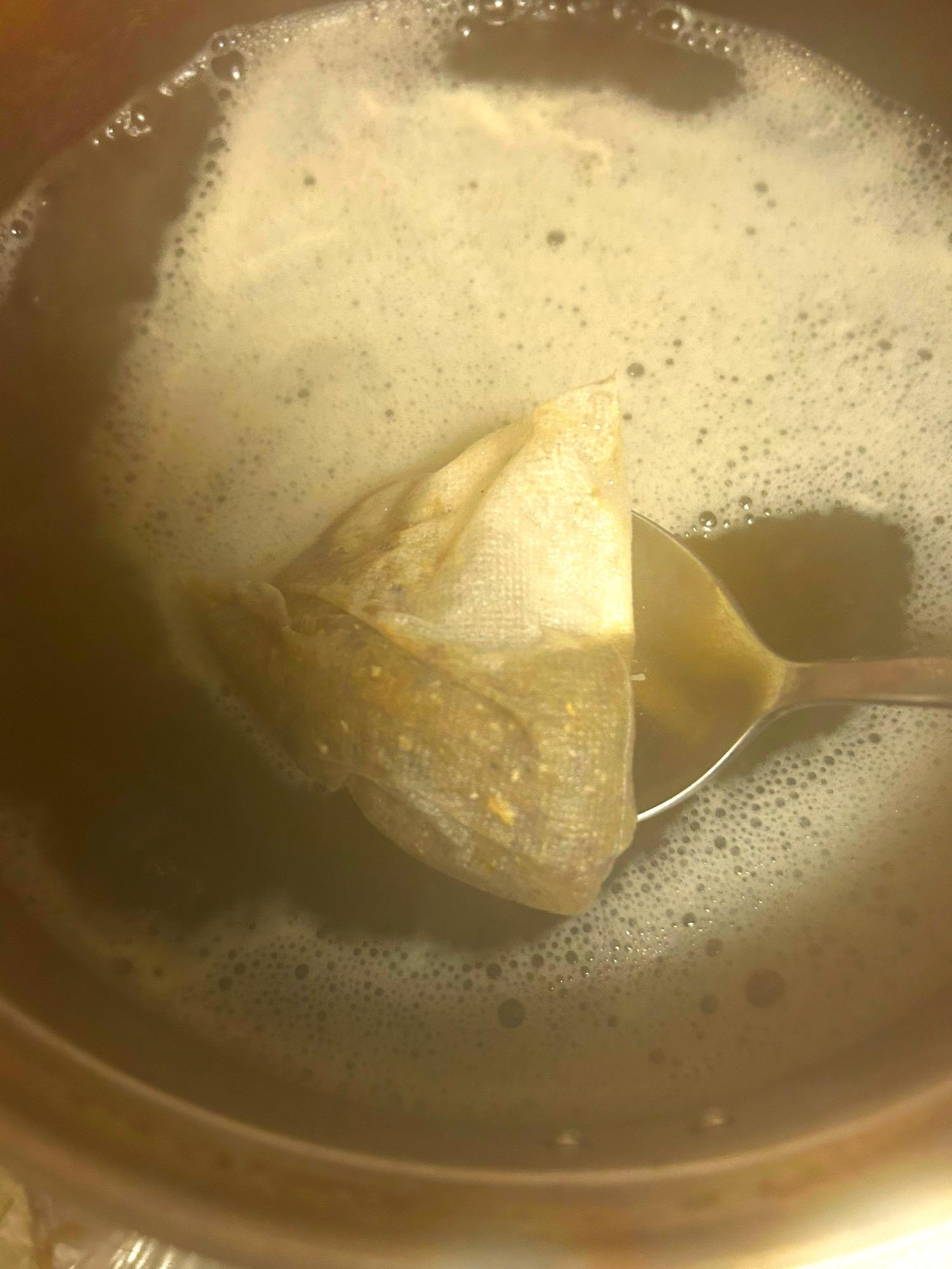 鍋に分量の水と出汁パックや顆粒出汁を煮立てます。出汁パックなら3分くらい煮立ててパックを捨てます。