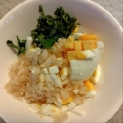 Aのゆで卵、らっきょう、青しそはみじん切りしマヨネーズ、塩コショウとまぜておく