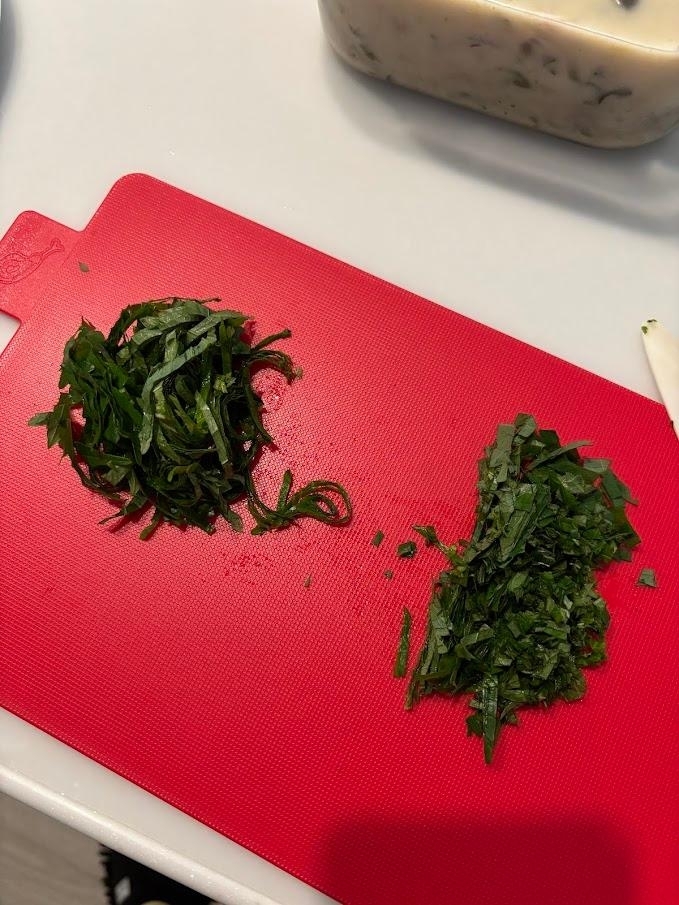 大葉は、5枚は千切り、5枚はみじん切りにしておきます。