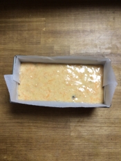 型紙を敷いた型に流し入れて、台に軽くトントンと落として空気を抜きます。