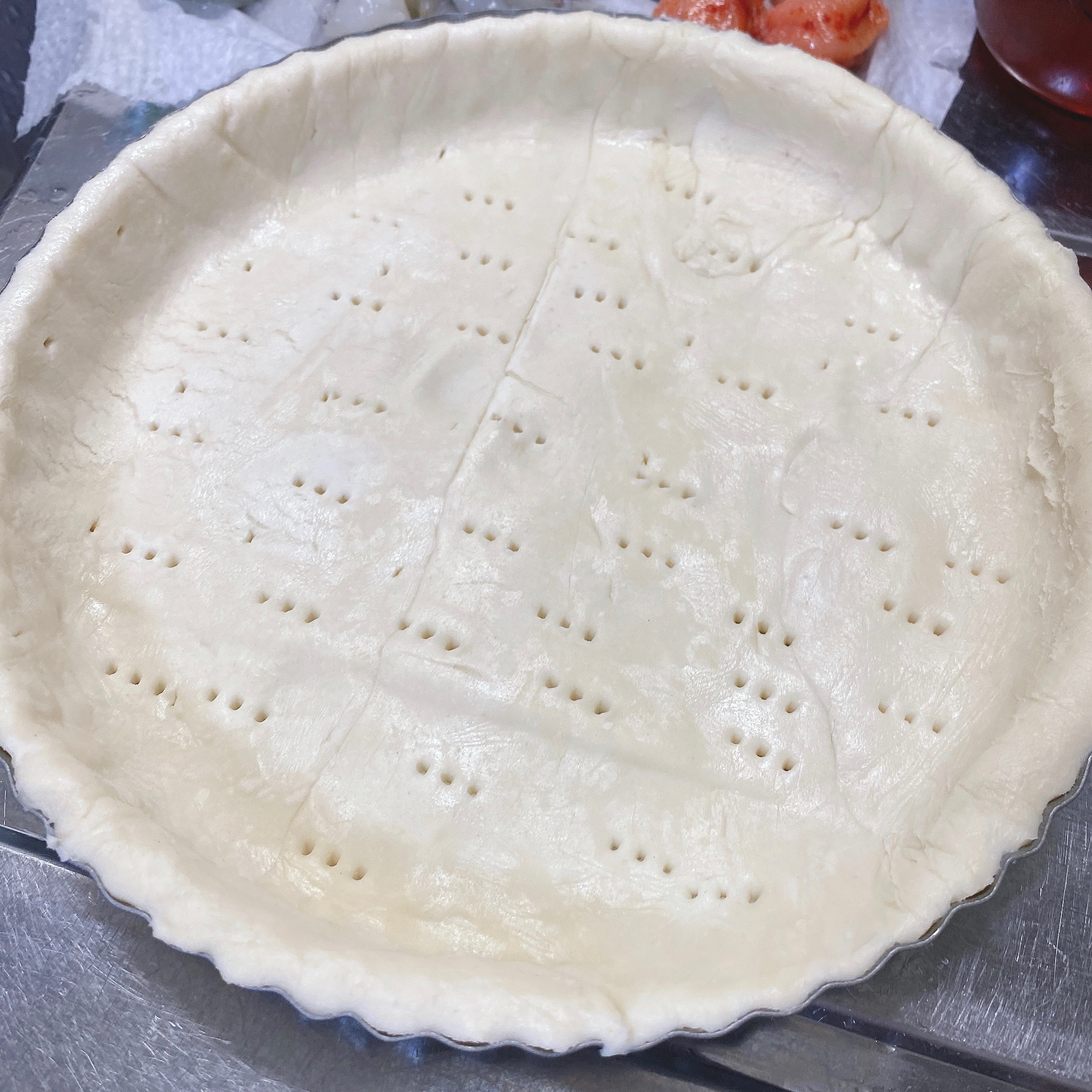 余った生地は他に使い道がなければ、耐熱皿にアルミホイルを2〜3枚重ねた物に広げてミニタルト作れます(^^)