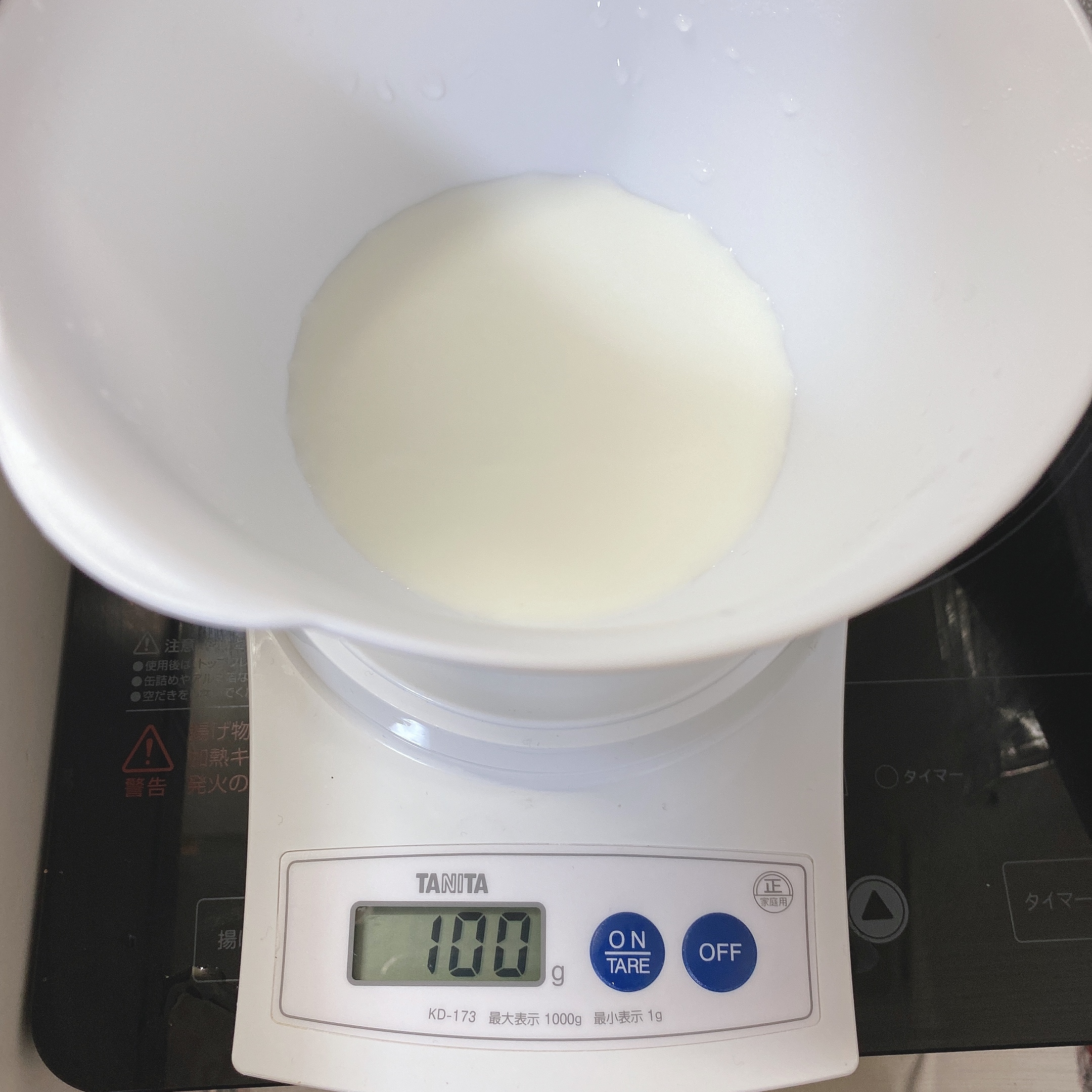 ボールに牛乳100gを注いで、