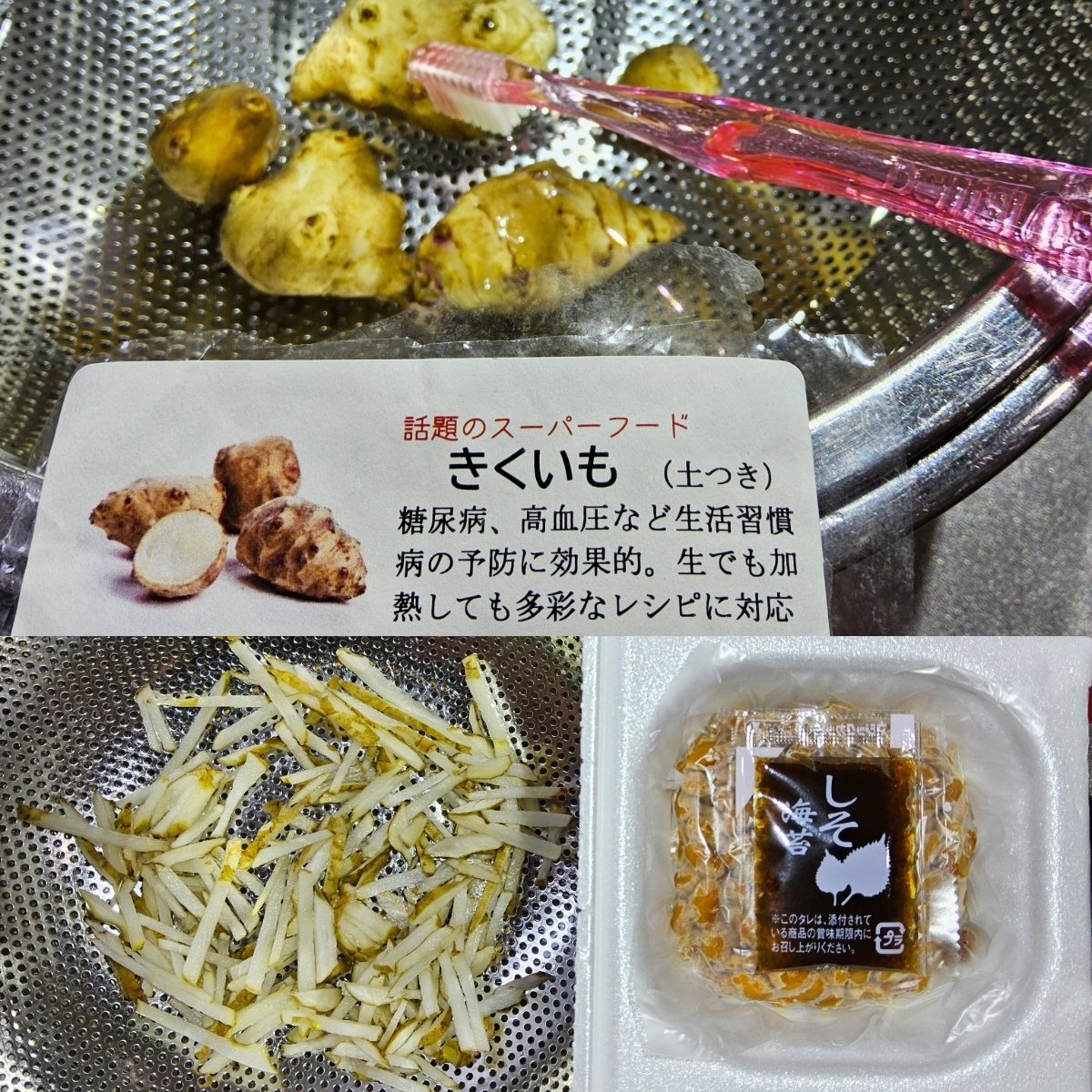 納豆に添付のたれ、水気を切った菊芋を加えてかき混ぜる。