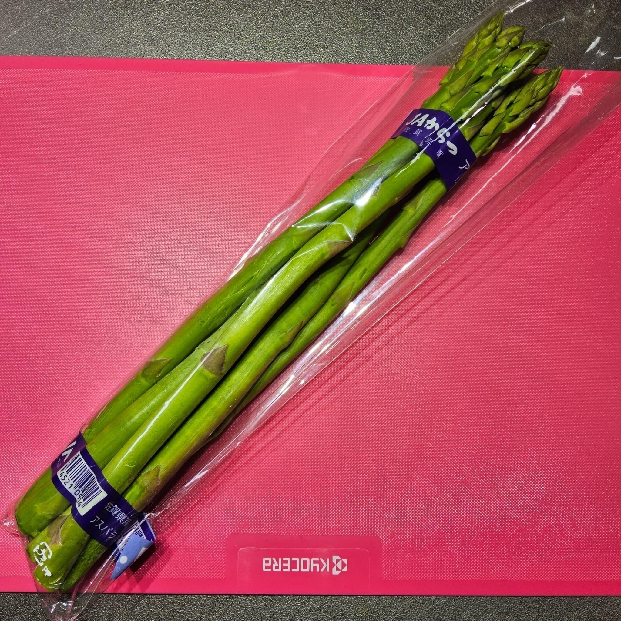 コンビニで買った、ものすごく細くてコンパクトサイズのアスパラ♪