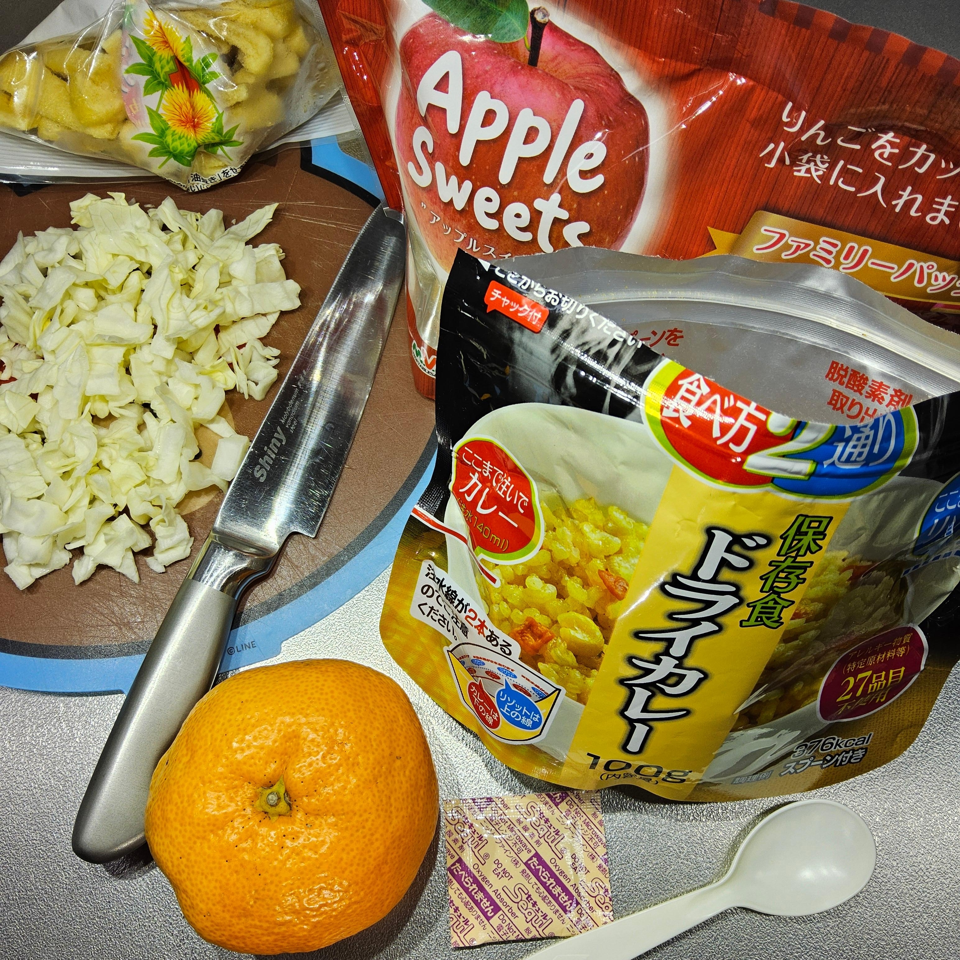 工程➀*¹非常時対応で水(15℃)を入れてから1hで食べられるが、熱湯ではなく水の場合はキャベツと油揚げが柔らかくならない。 工程②*²袋一杯に熱湯が入っているので火傷に注意⚠熱湯が溢れそうな時は無理にチャックを閉めず、匙等で熱湯を減らす。
