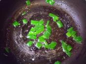 フライパンに油を引きニラを炒めます。