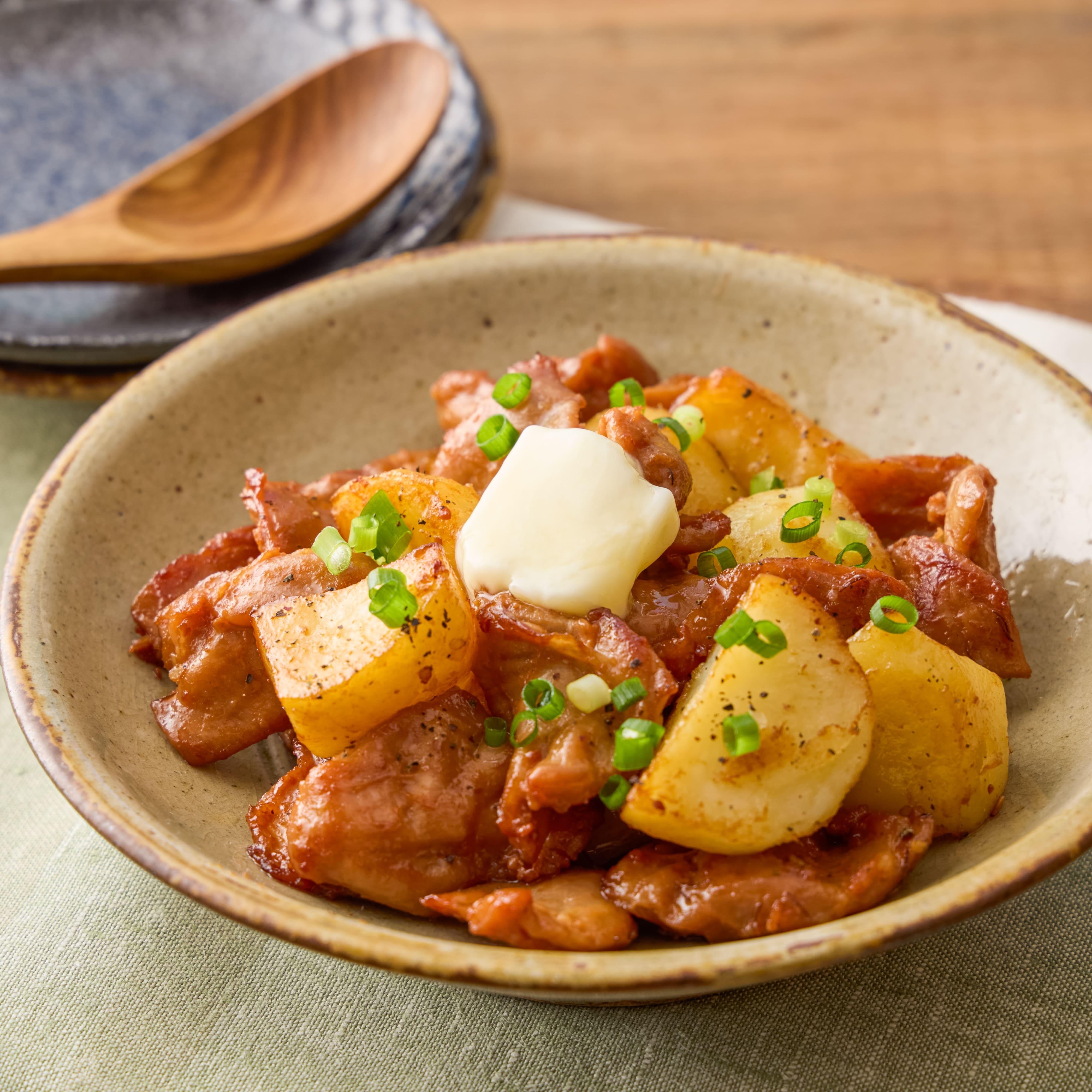 塩/味噌バターとじゃがバターからイメージして作ったレシピです。じゃがいも×バター×塩/みその間違いない組み合わせに、鶏ハラミのうまみと食感がさらに美味しく、小ねぎで彩りをプラスしました。