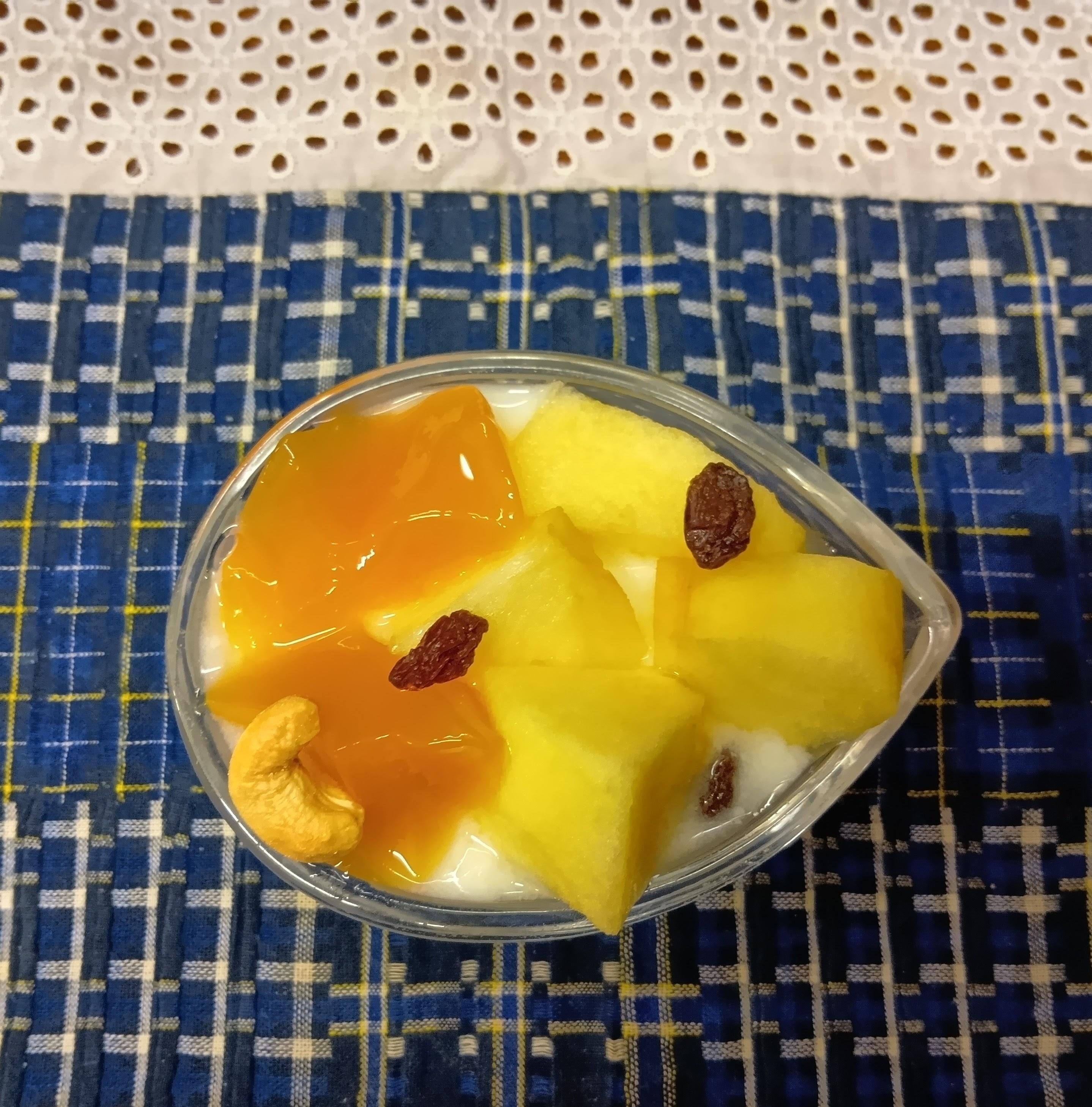 マンゴーゼリーを盛り付ける