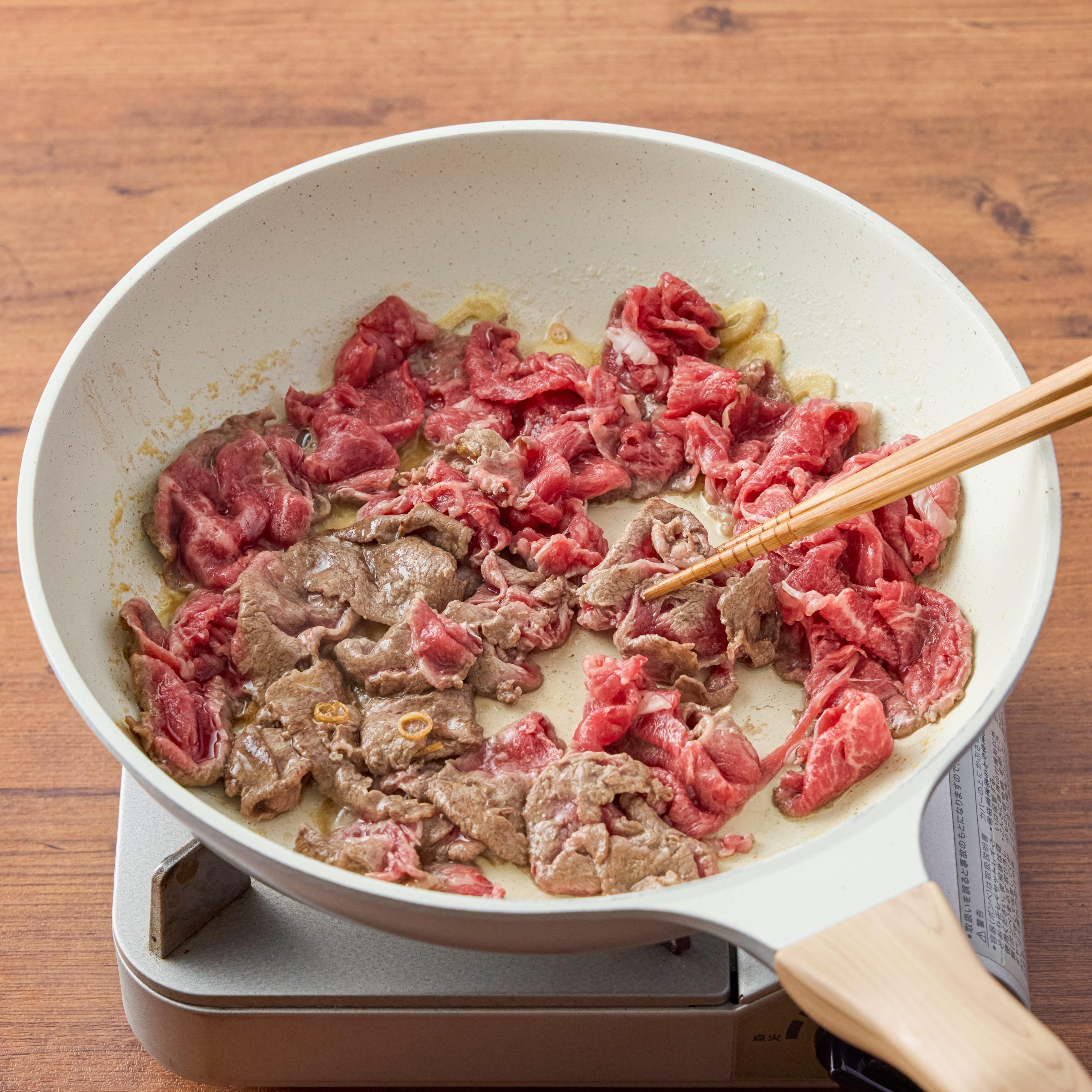 ・宮崎牛赤身切落しは加熱しすぎないことが、固くならないポイントです。さっと炒めてアツアツをいただきましょう。 ・大人は黒こしょうをたっぷりかけるのがおすすめ。