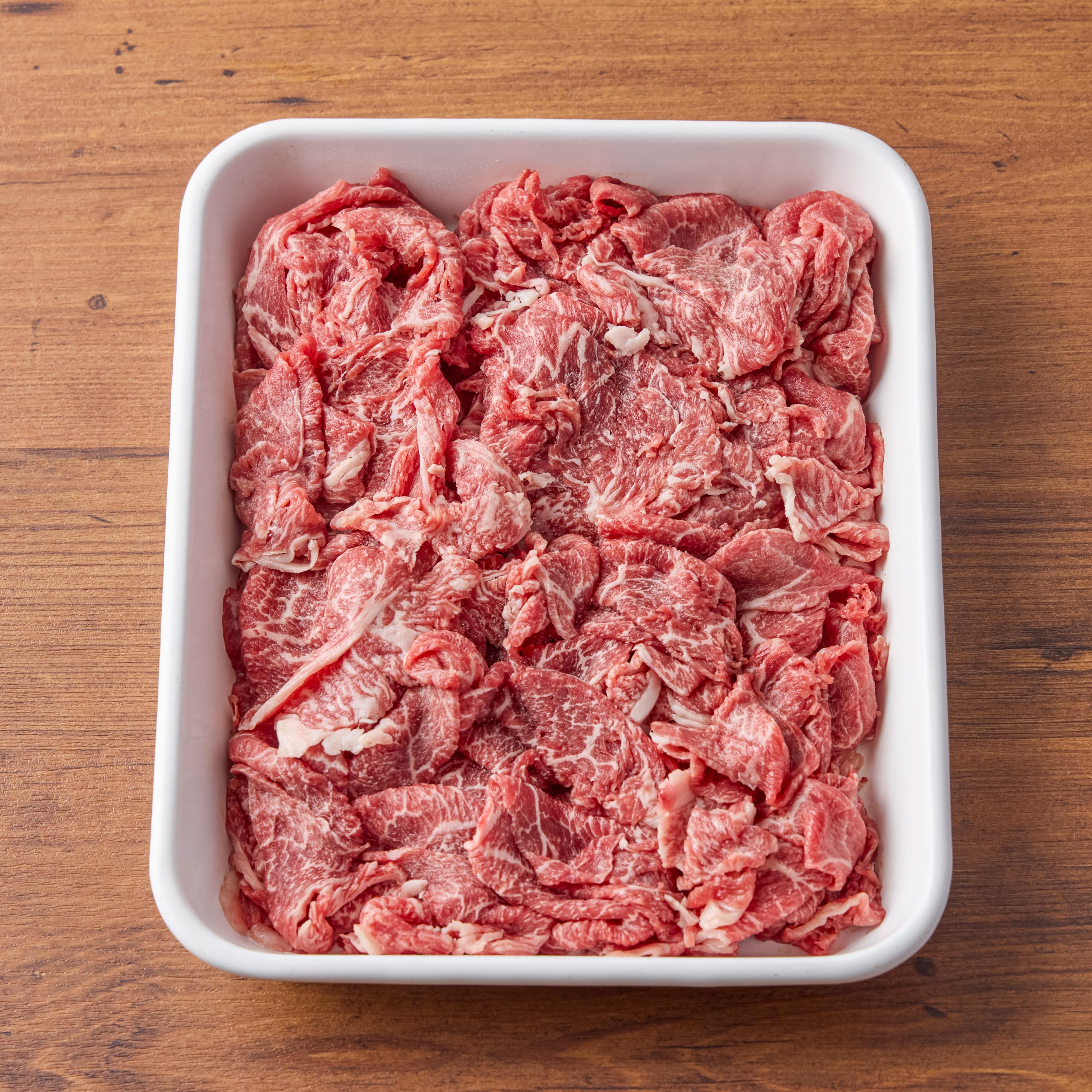 今回は、都城市のふるさと納税で届く「宮崎牛赤身切落し (500g×2p)」を使用します。