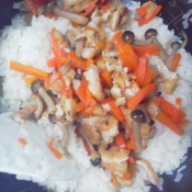 熱々ご飯に、【5】の寿司酢を混ぜ、【4】の具を入れサックリ混ぜて冷まします。