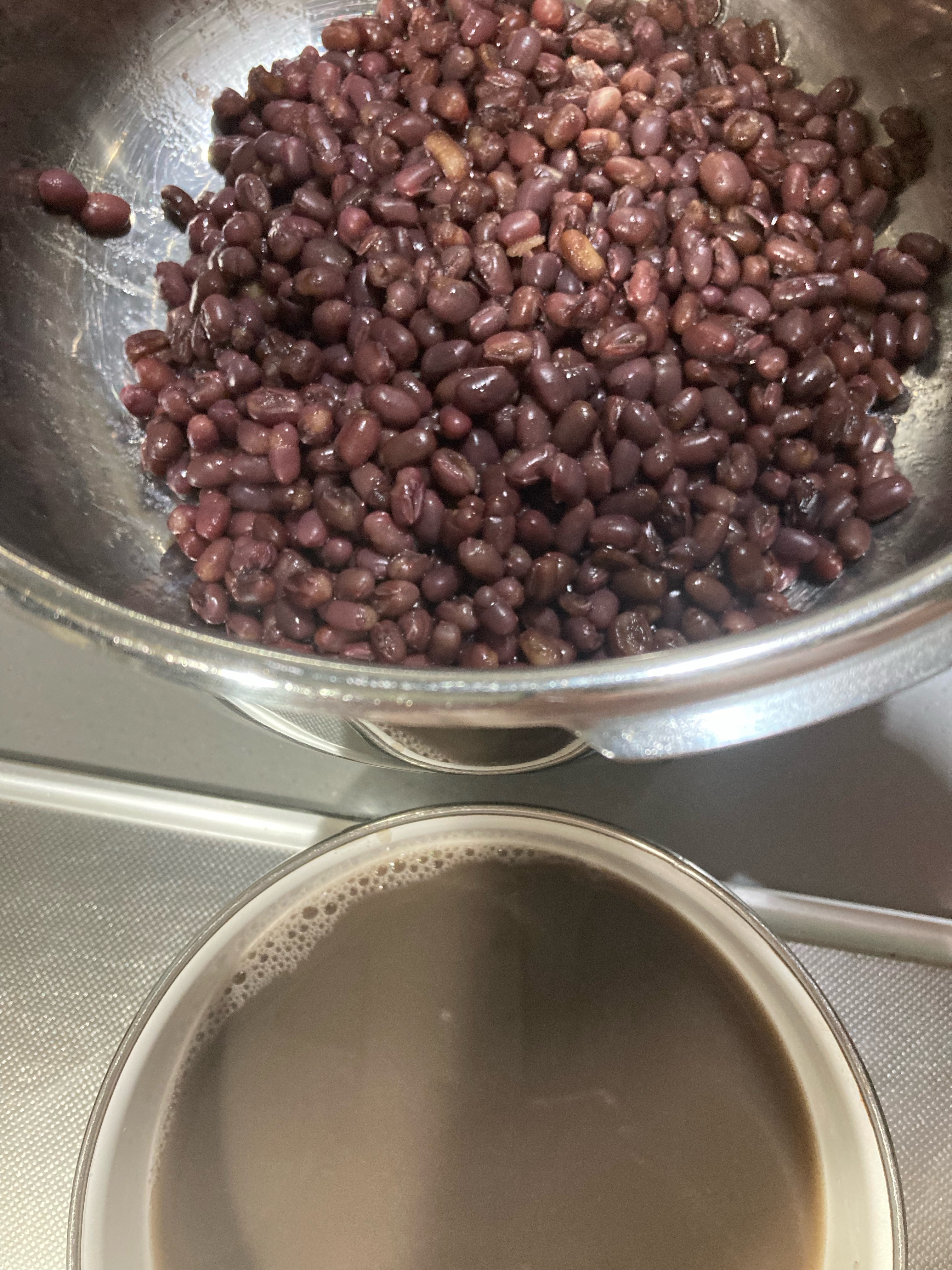 湯を切った小豆に5の砂糖蜜を入れて、そのまま冷ます