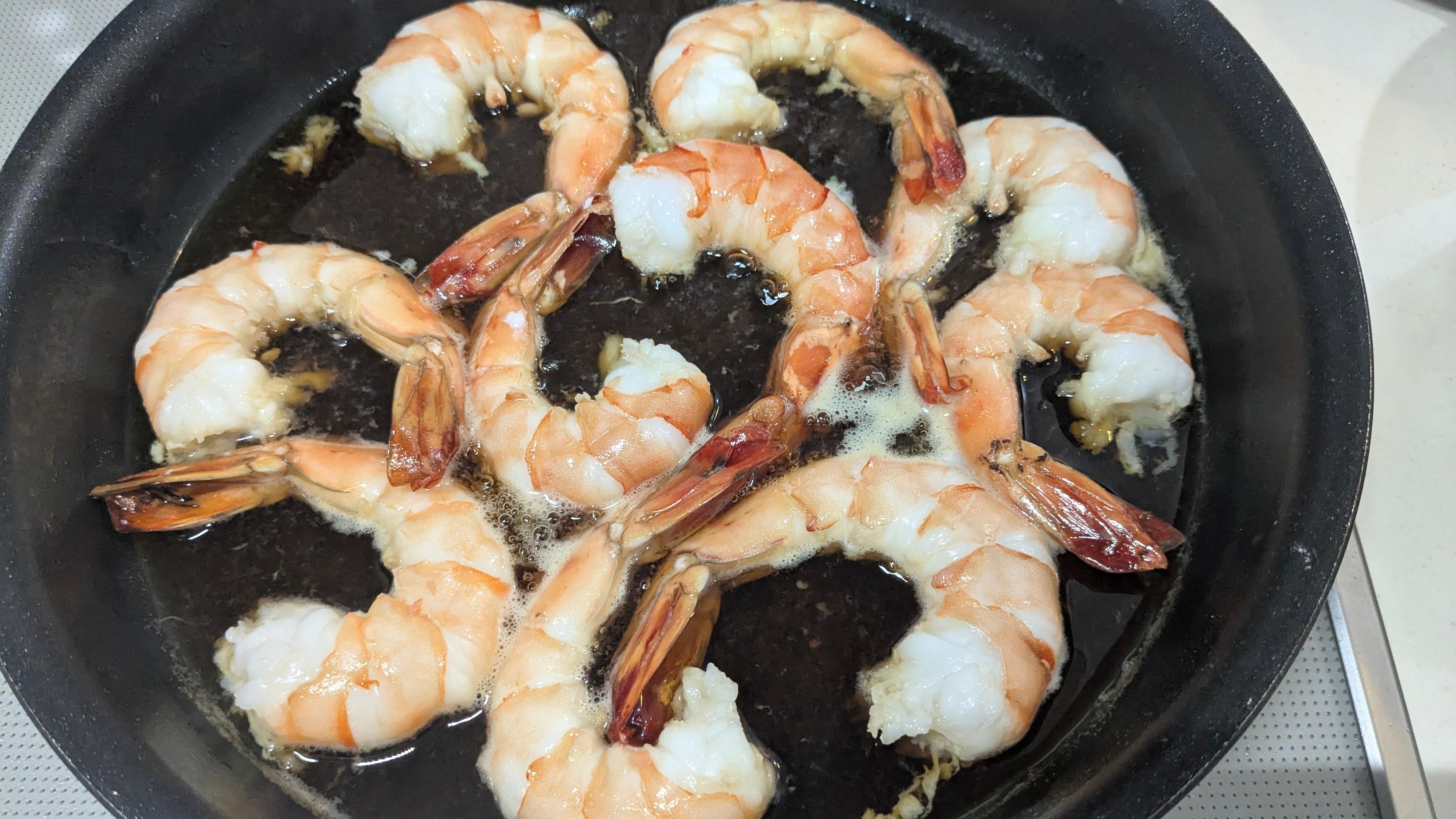 沸騰したら海老を加え約2分煮る、裏返し約2分煮る、冷めるまでそのまま放置