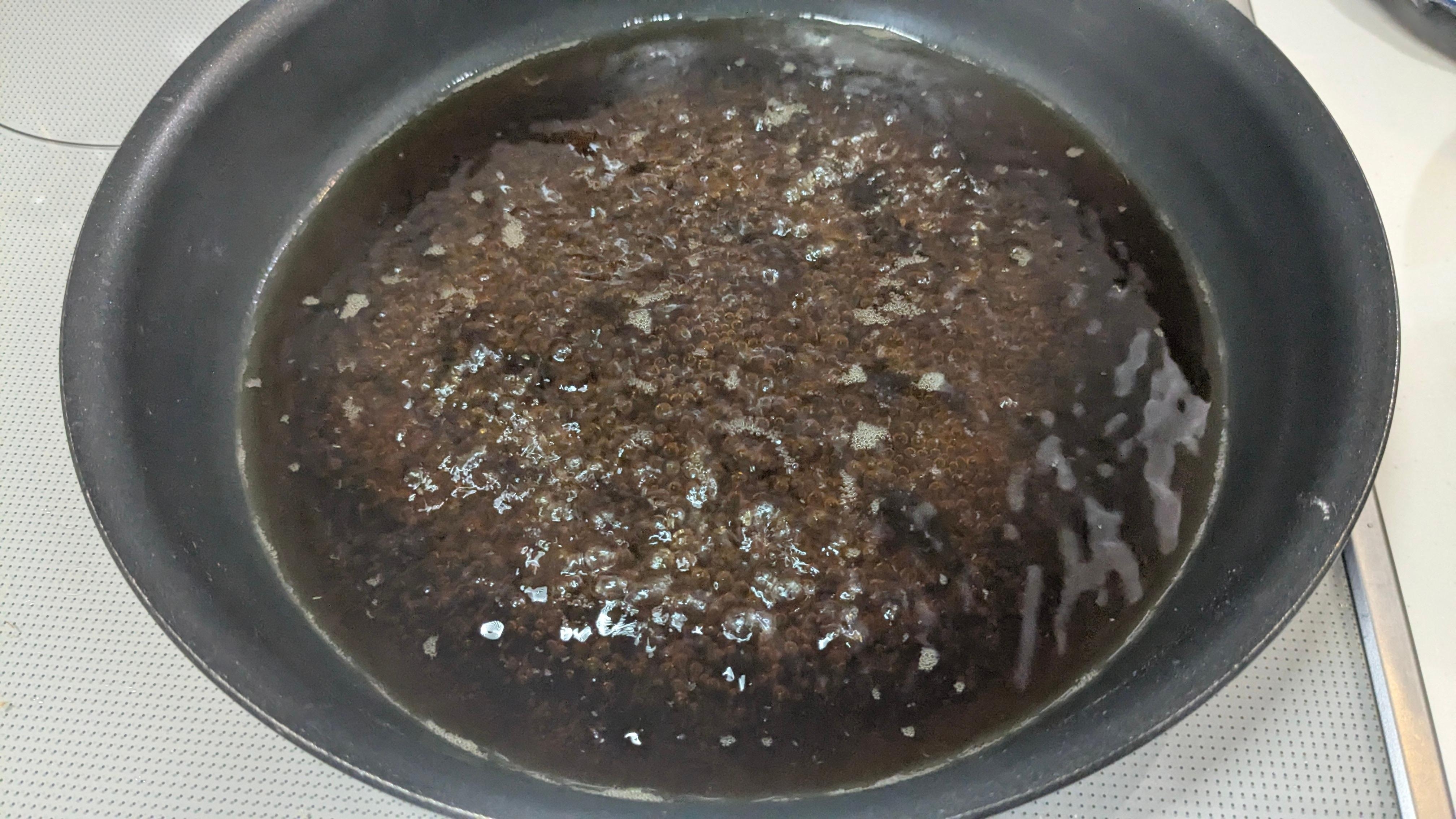 空のフライパンに★を入れ沸騰させる