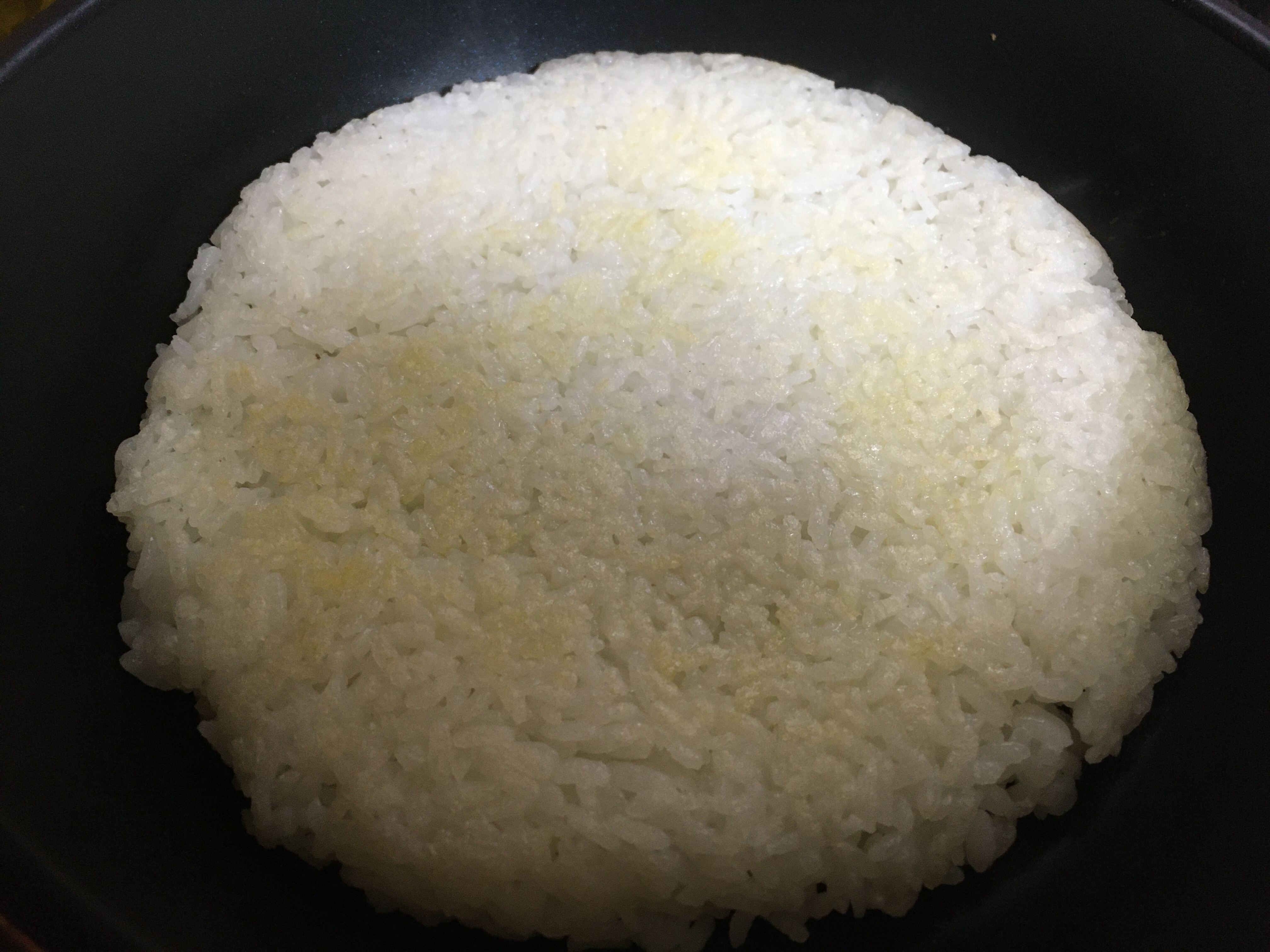 ごはんに少し焼き色がついたらひっくり返して弱火にする
