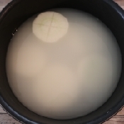 米の研ぎ汁(なければ水+生米一つかみ50g程度)で竹串が通るくらいまで15分位ゆでる。