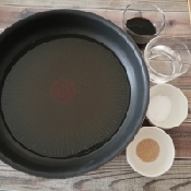 みりんをフライパンに入れて、一度ひと煮立ちさせてから◎の調味料、水を入れて再度煮立てる。