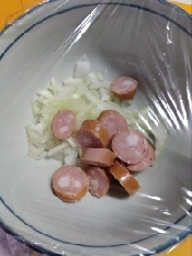 玉ねぎは皮をむき、みじん切りにする。ウインナーは小さめに切っておく。