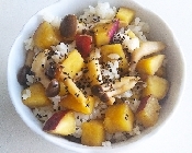お茶碗に盛り付け、黒ごまをふったら完全。