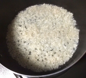沸騰してきたら、白米ともち米を入れます。弱火にし、ブツブツと煮込みます。