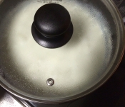 テフロン加工鍋にお水を入れ、沸騰させます。
