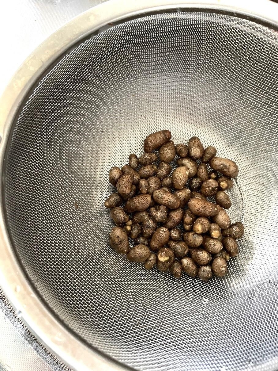 生栗は熱湯に入れ そのまま冷まし 皮をむく。