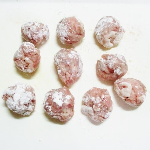 豚肉は塩コショウして片栗粉をまぶす。