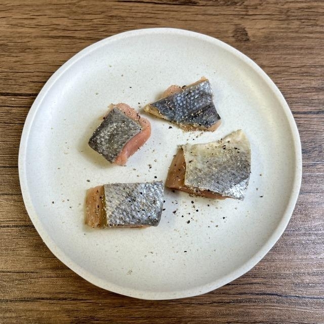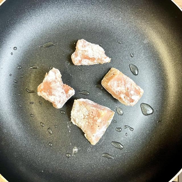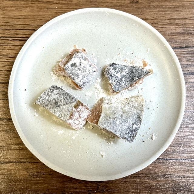 鮭は洗って水気を取り、食べやすい大きさに切る。塩胡椒を振って10分置く。