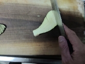 なすのへたをとって半分に切り少し残して薄く切り込む