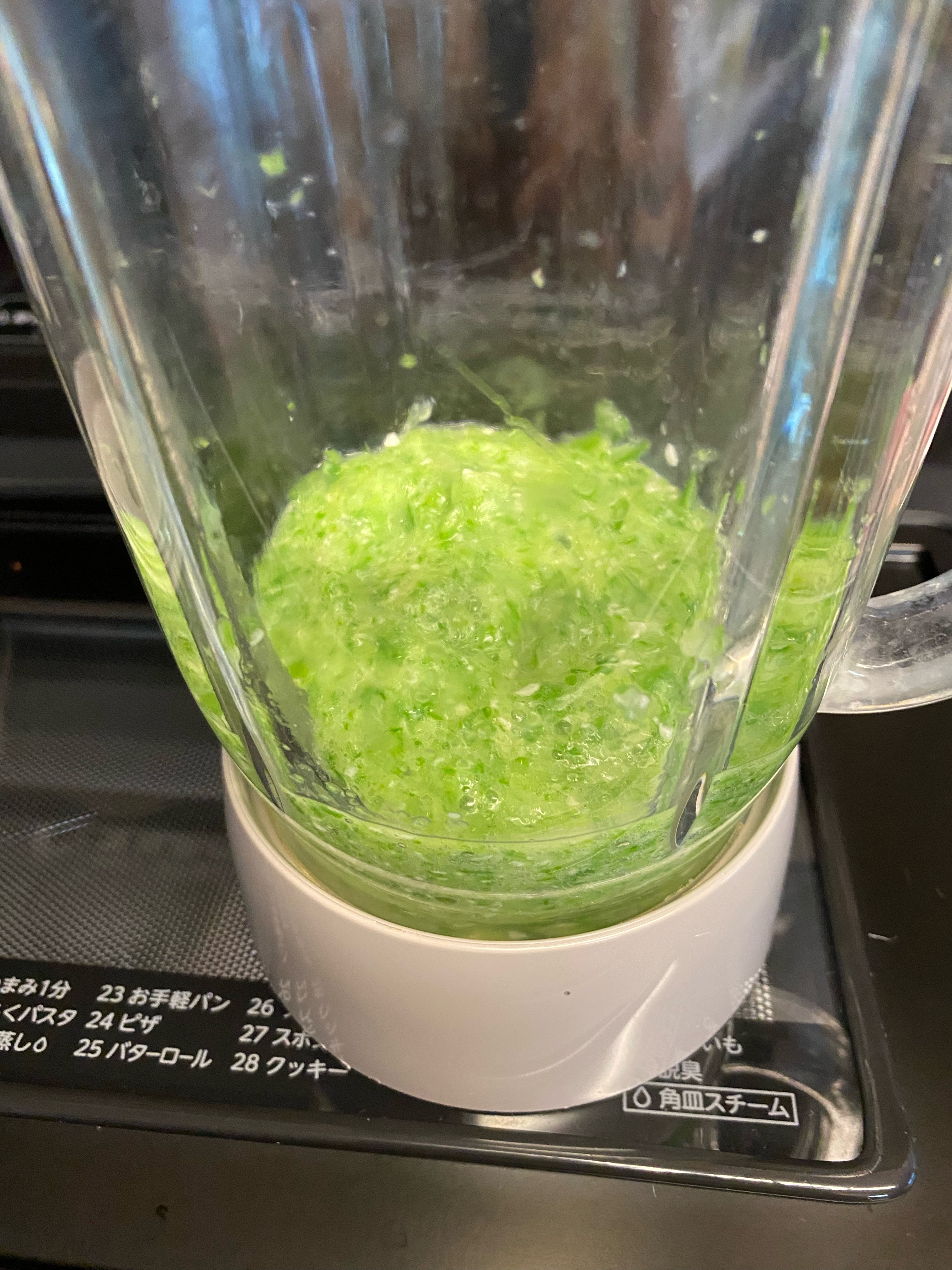 水を加え蓋をして、ペースト状になるまで攪拌する