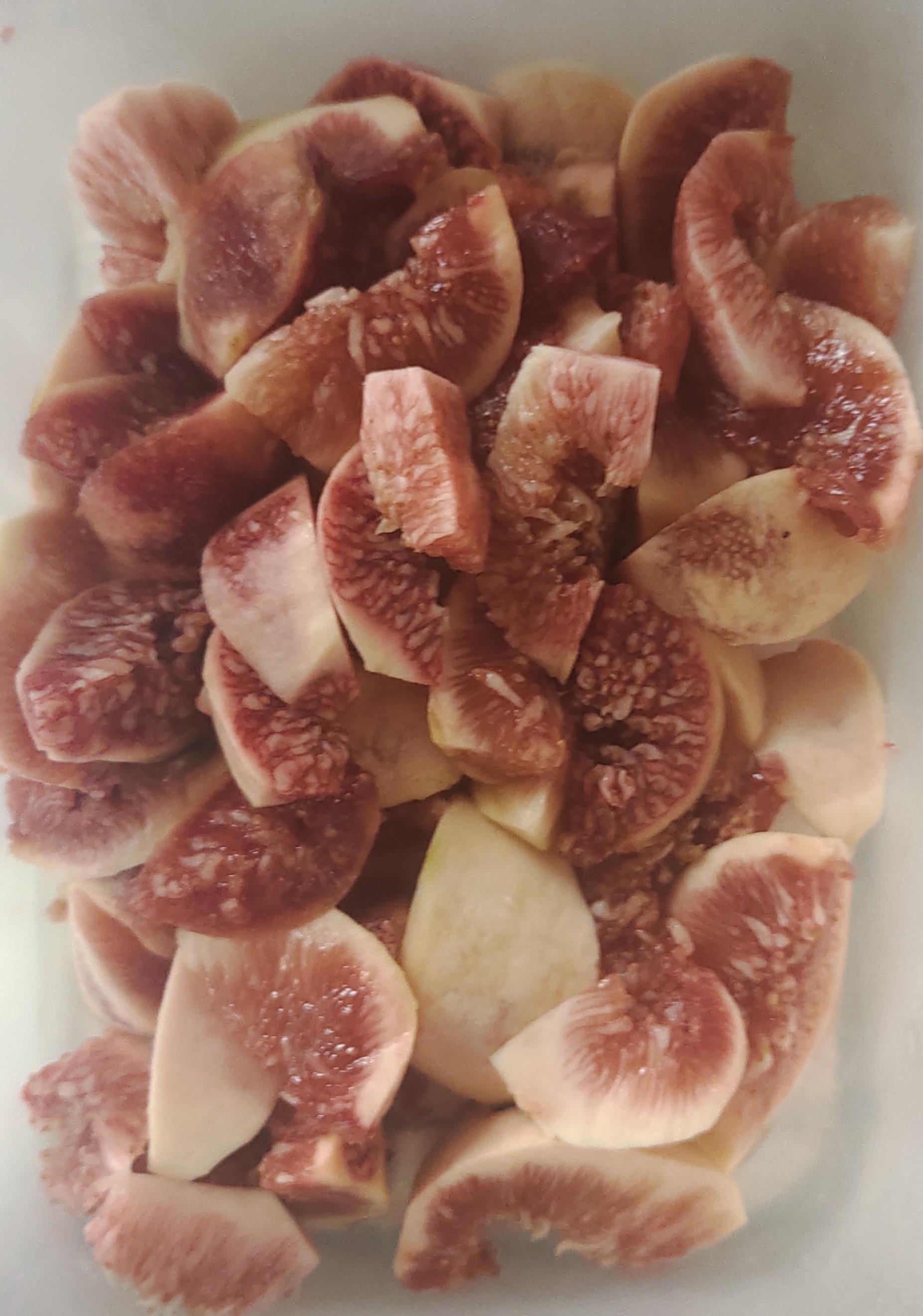 食パンにジャムをぬっていちじくをちらしピザ用チーズをのせる
