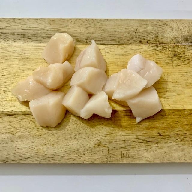 ホタテは1/4サイズにカットする