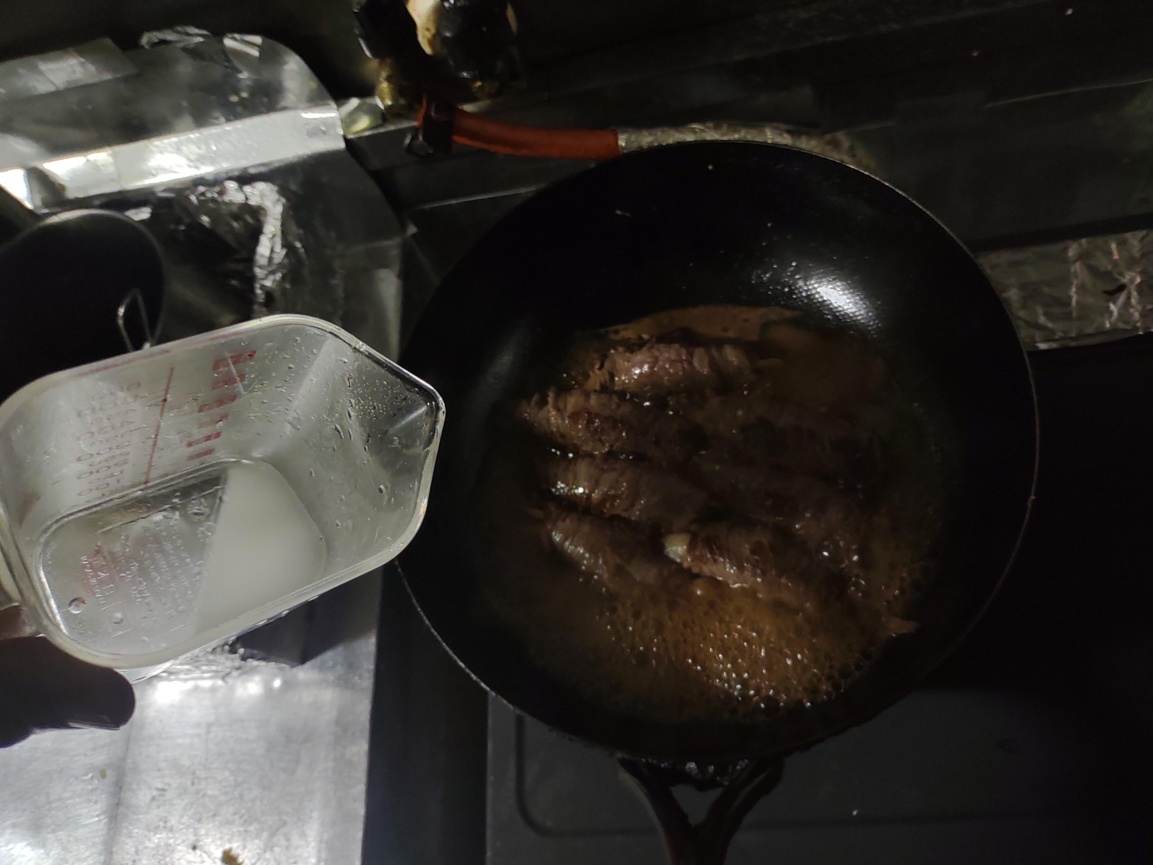 汁が半分ぐらいになったらになったら水溶き片栗粉でとろみをつけて絡める