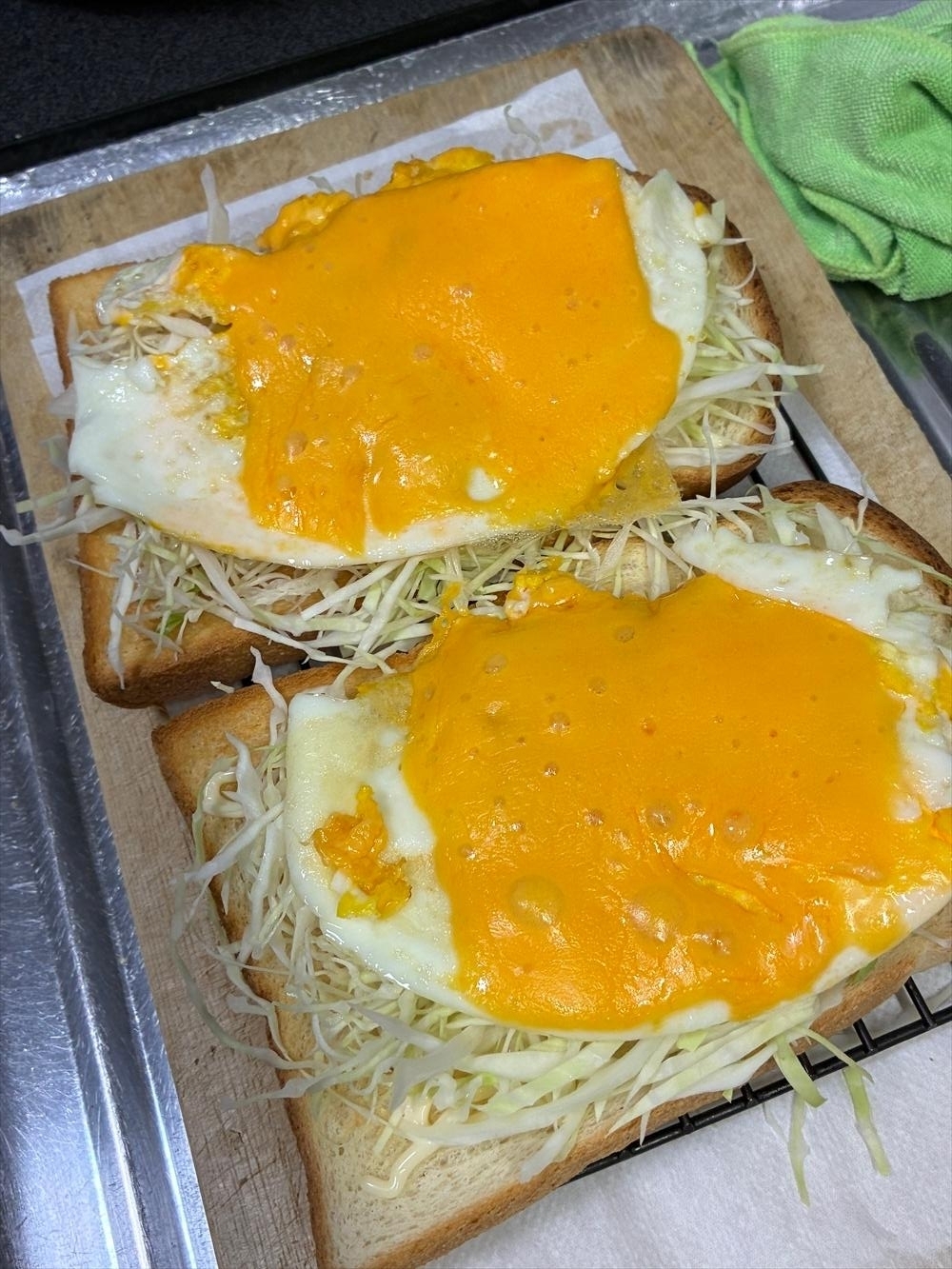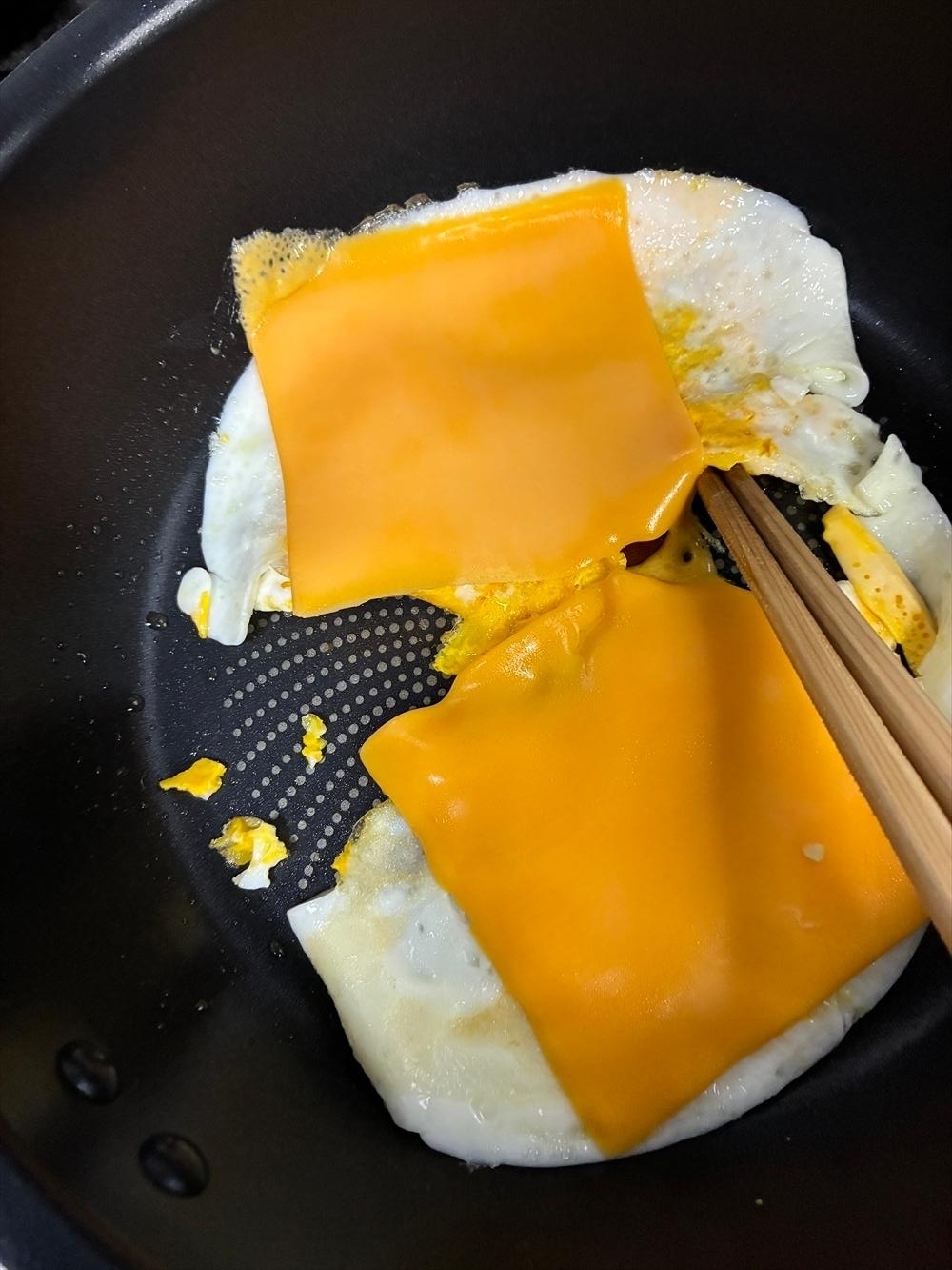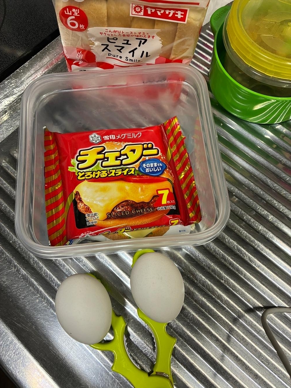 食パン、鶏卵のサイズはお好みでいいですけどチェダーチーズはマストです。